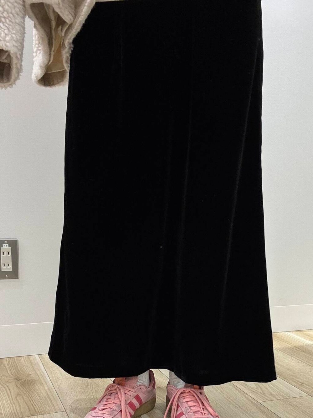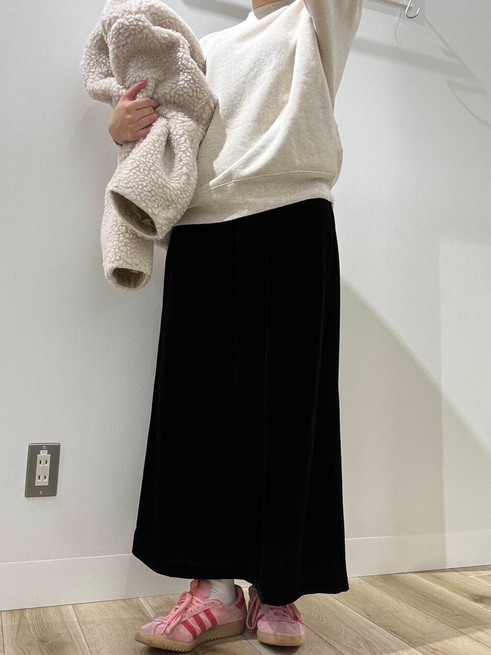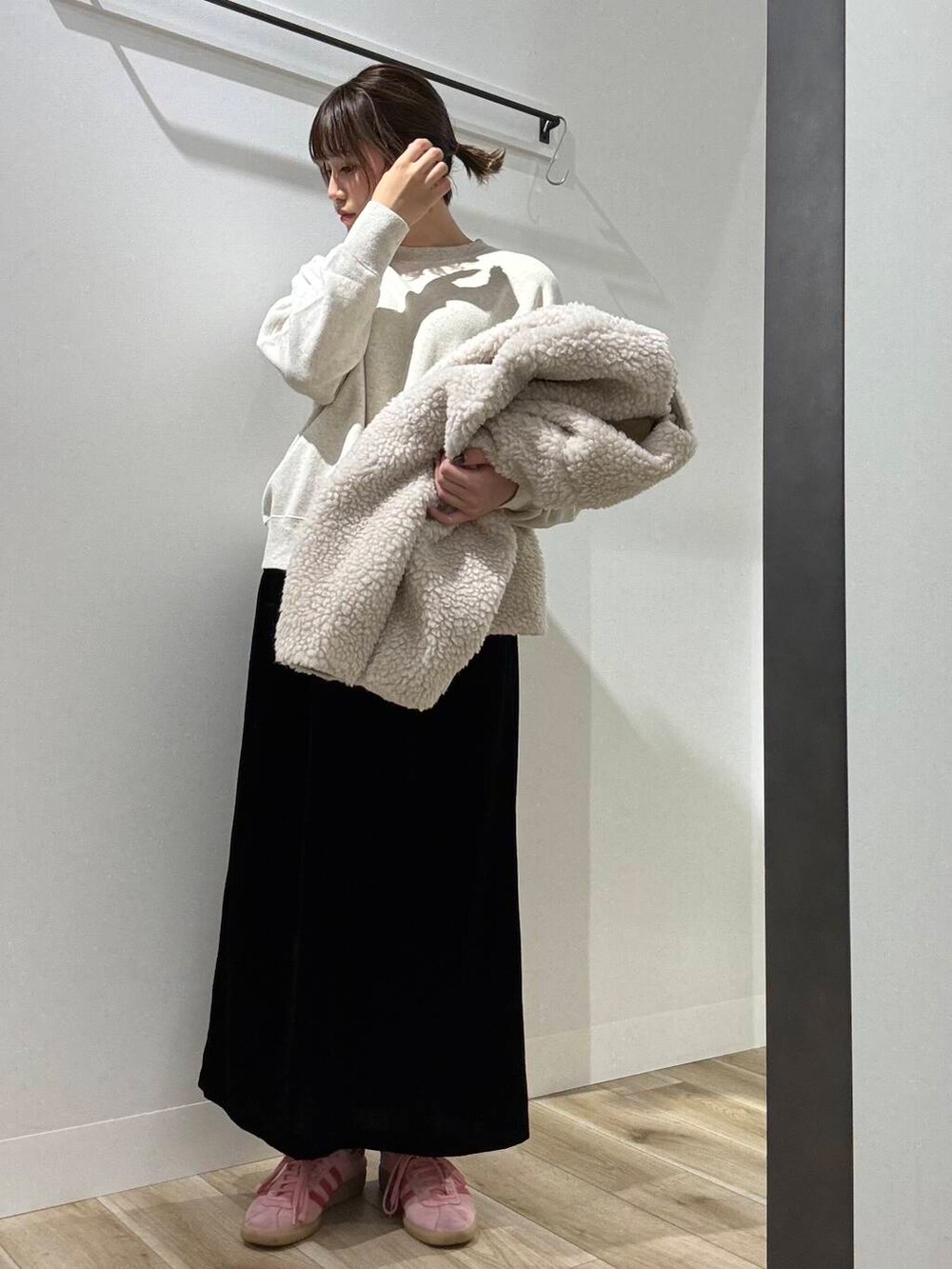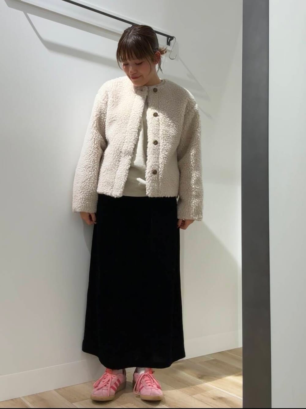 綺麗めすぎないようにスニーカー合わせをしましたが、丈感がスニーカーとバランスが良くて最高です◎!