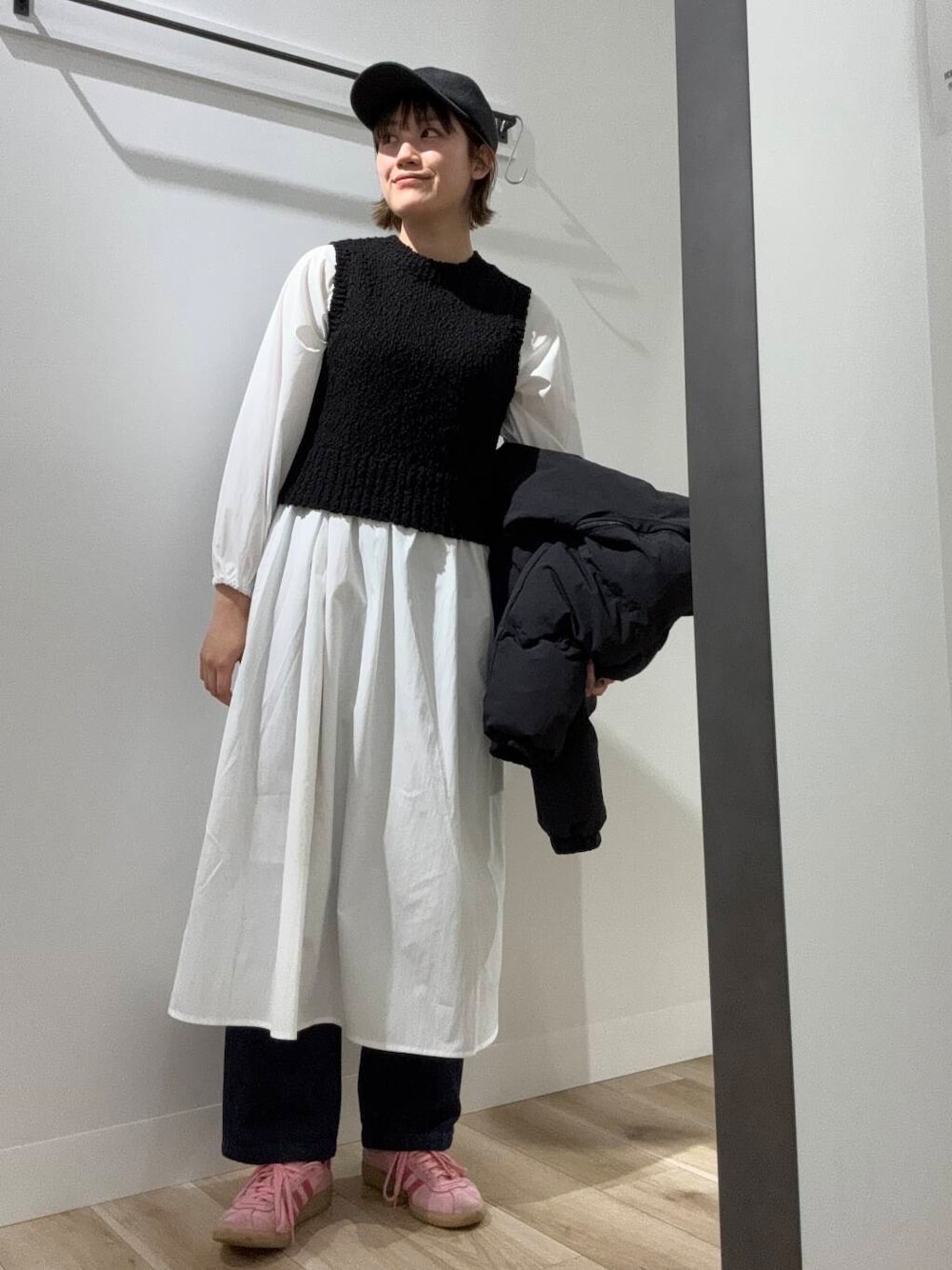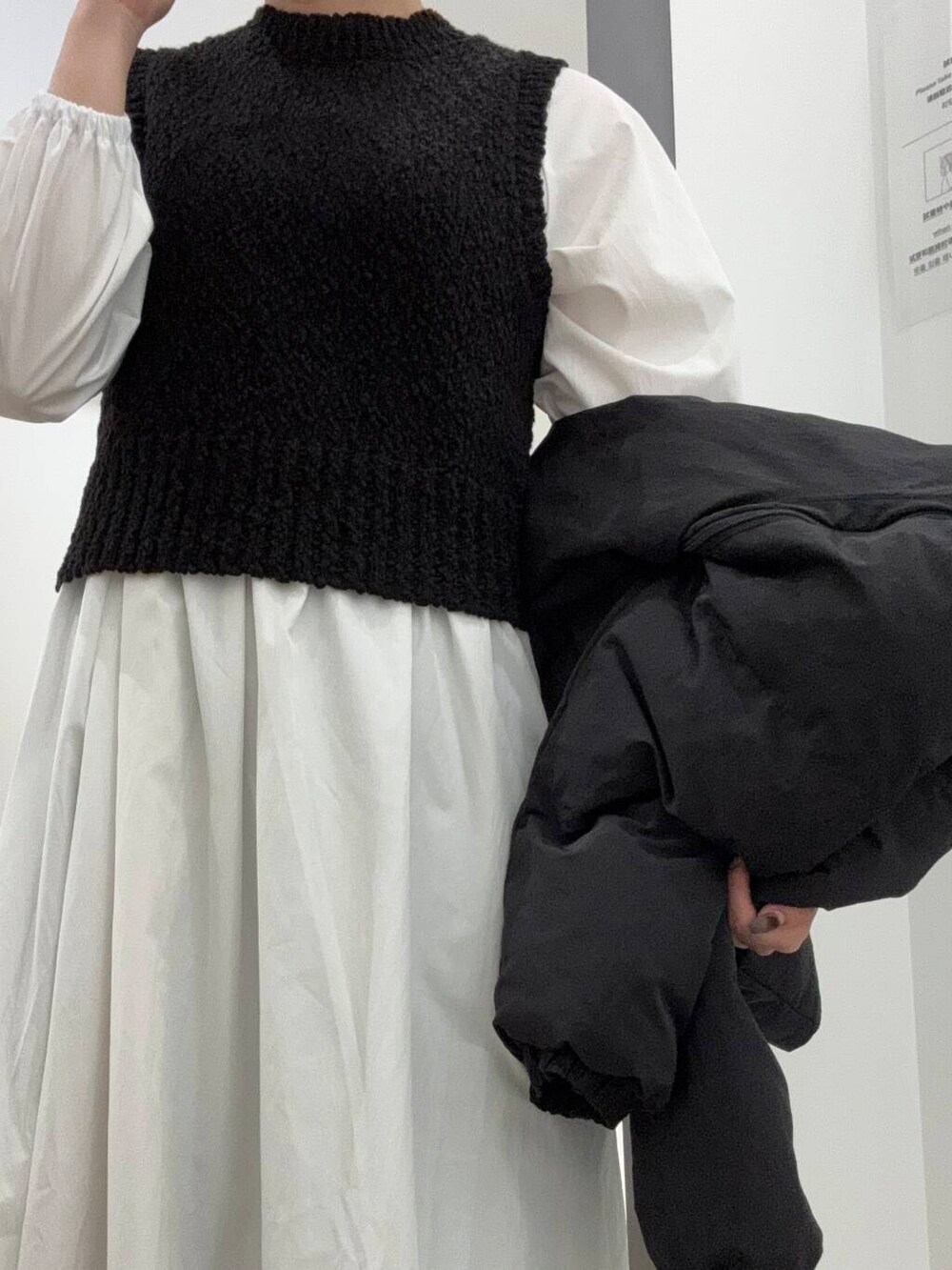 ニットベストとワンピースは別々に着ることもできるので、着方を変えることもオススメです!