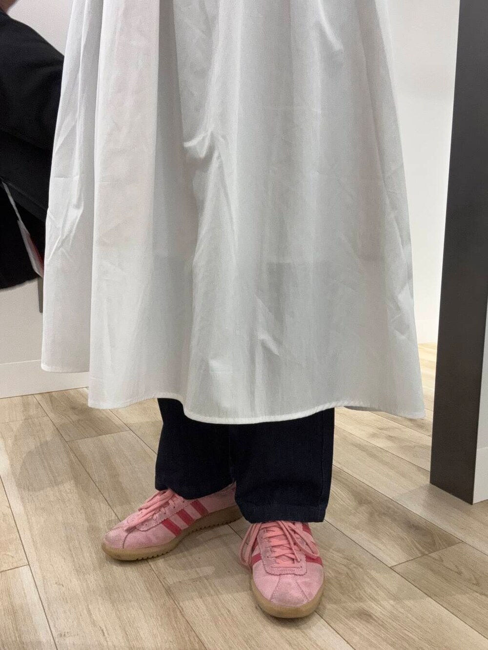まだまだ寒いのでワンピースとしてではなく、中にデニムを着用してみました!長さもデニムとの相性抜群なのでレイヤードが難しいという方にもオススメです☆