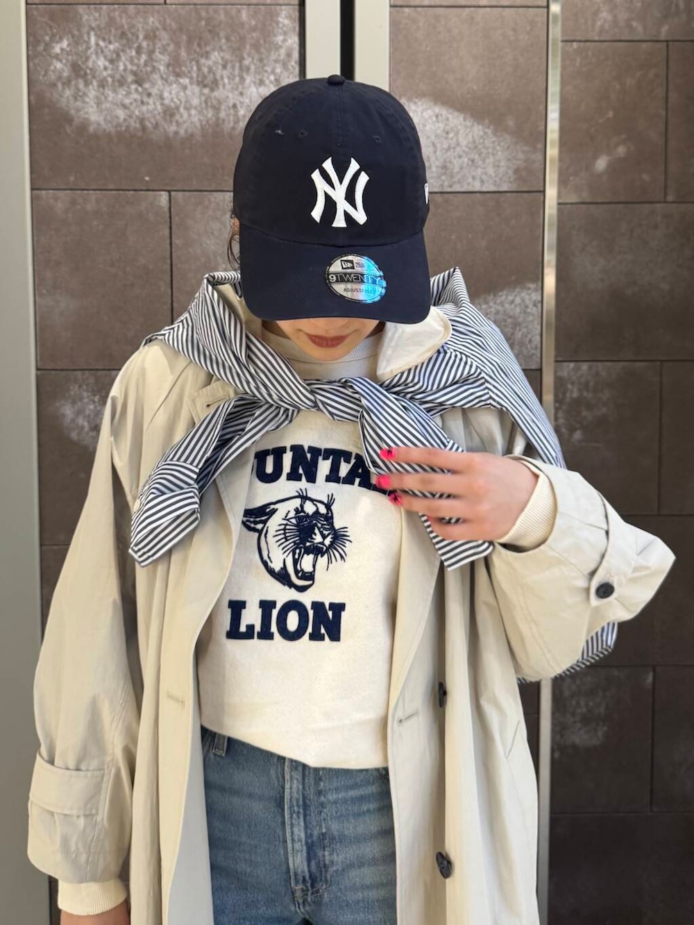 ロゴスウェットでとデニム合わせでカジュアルに、アウターで大人っぽく合わせています◎