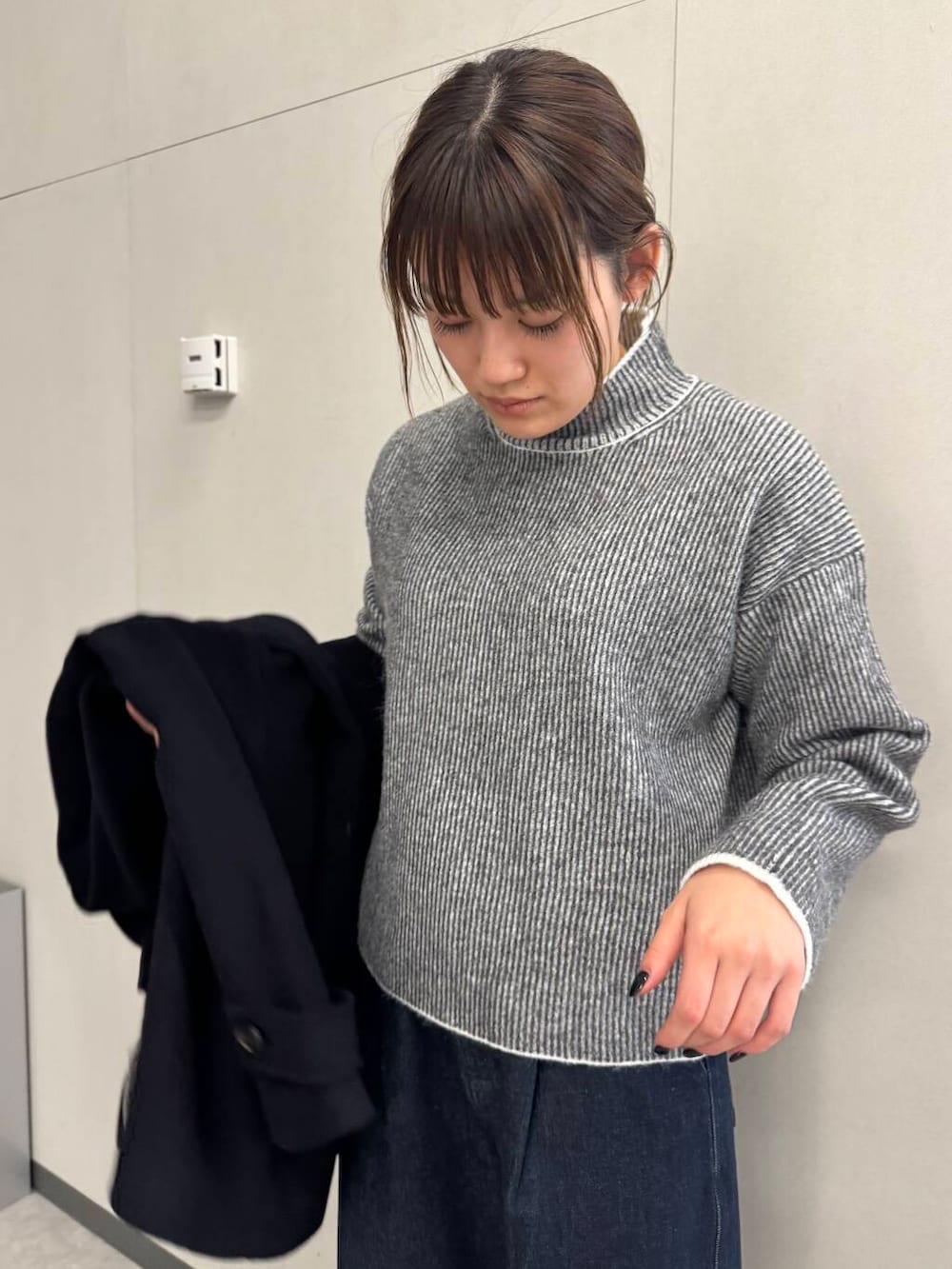 骨格的にタートルネックはスタイルが悪く見えますが、丈が程よく短いのでバランスが取れます!