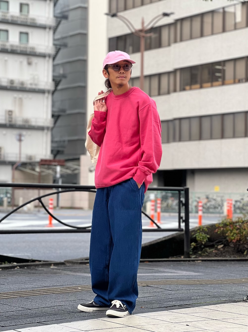 ピンク同士でもキャップとスウェットのトーンを変えることでなぜかまとまります。
