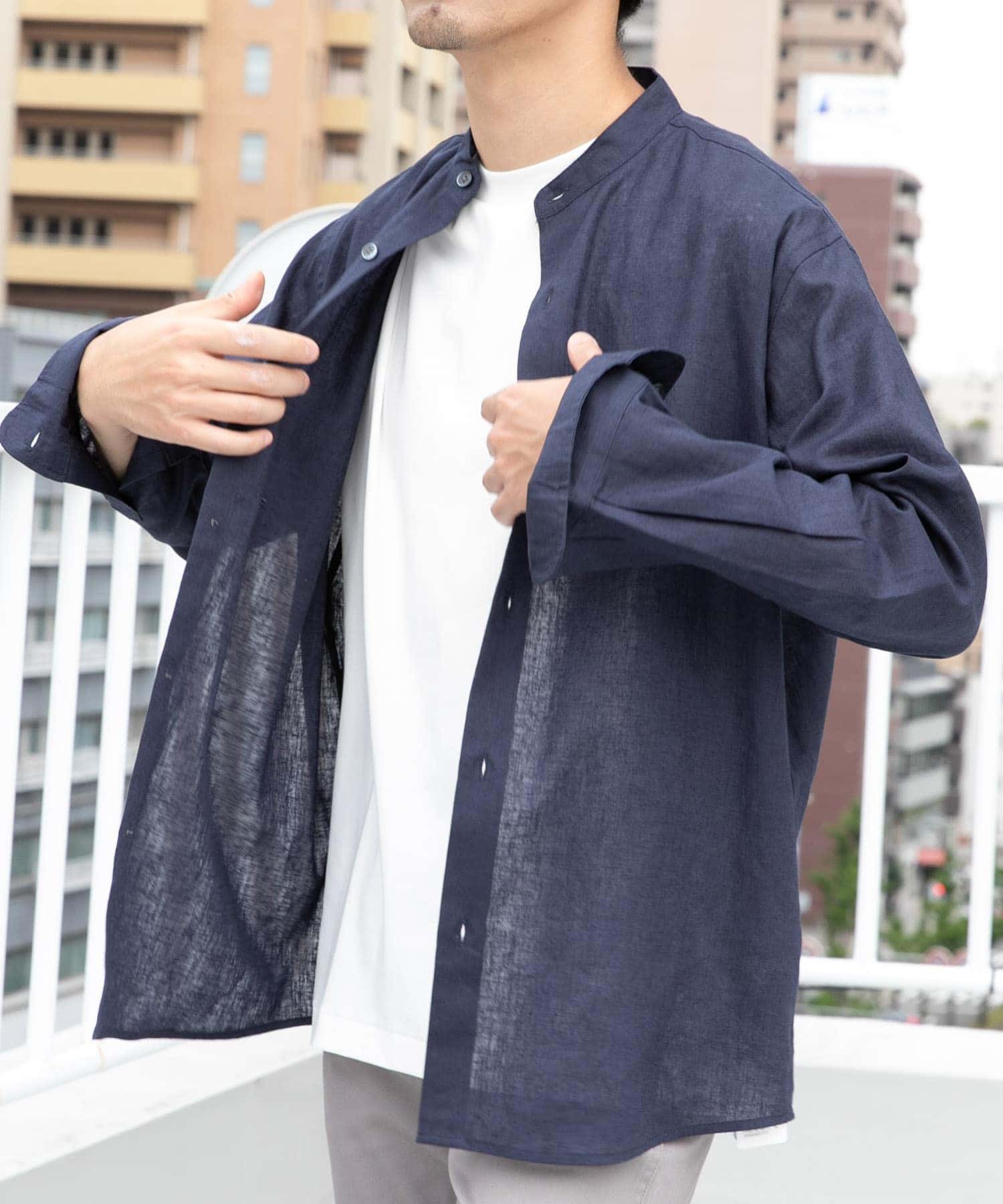 『WEB限定』『XLサイズあり』リラックスコットンリネンバンドカラー長袖シャツ