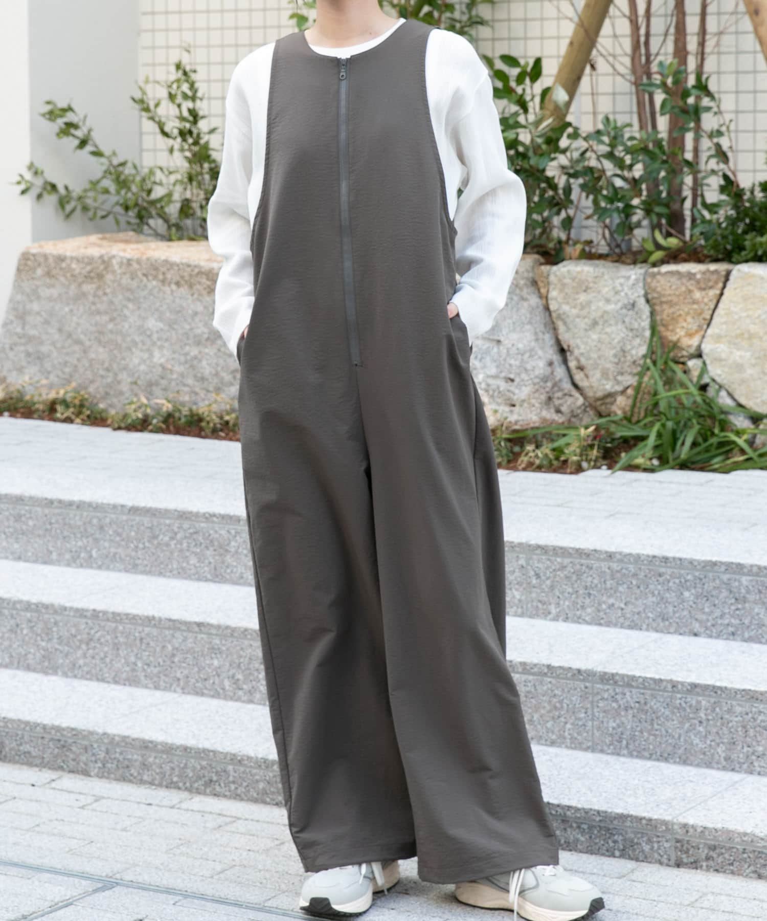 フロントジップオールインワンでコーデを組みました!