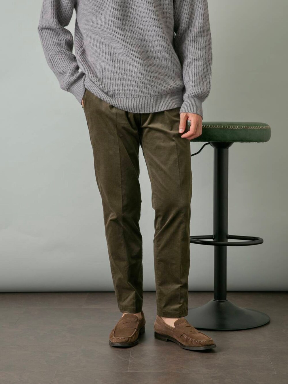 コーデュロイ素材でより深みあるオリーブが素敵。