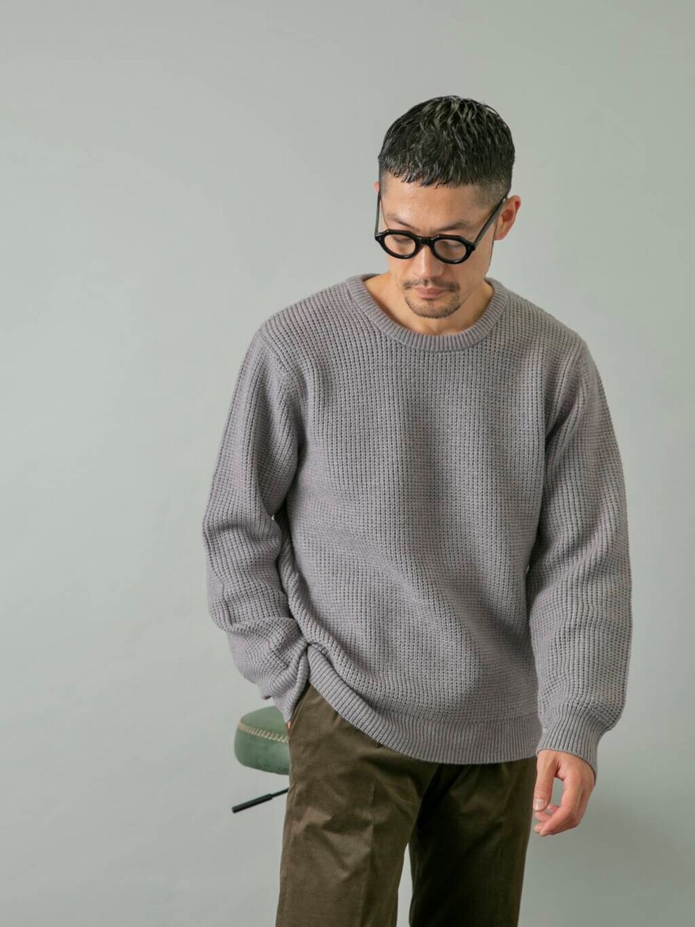 ざっくりした素材感ながら、レーヨン&ポリ素材で軽さとイージーケアが魅力。