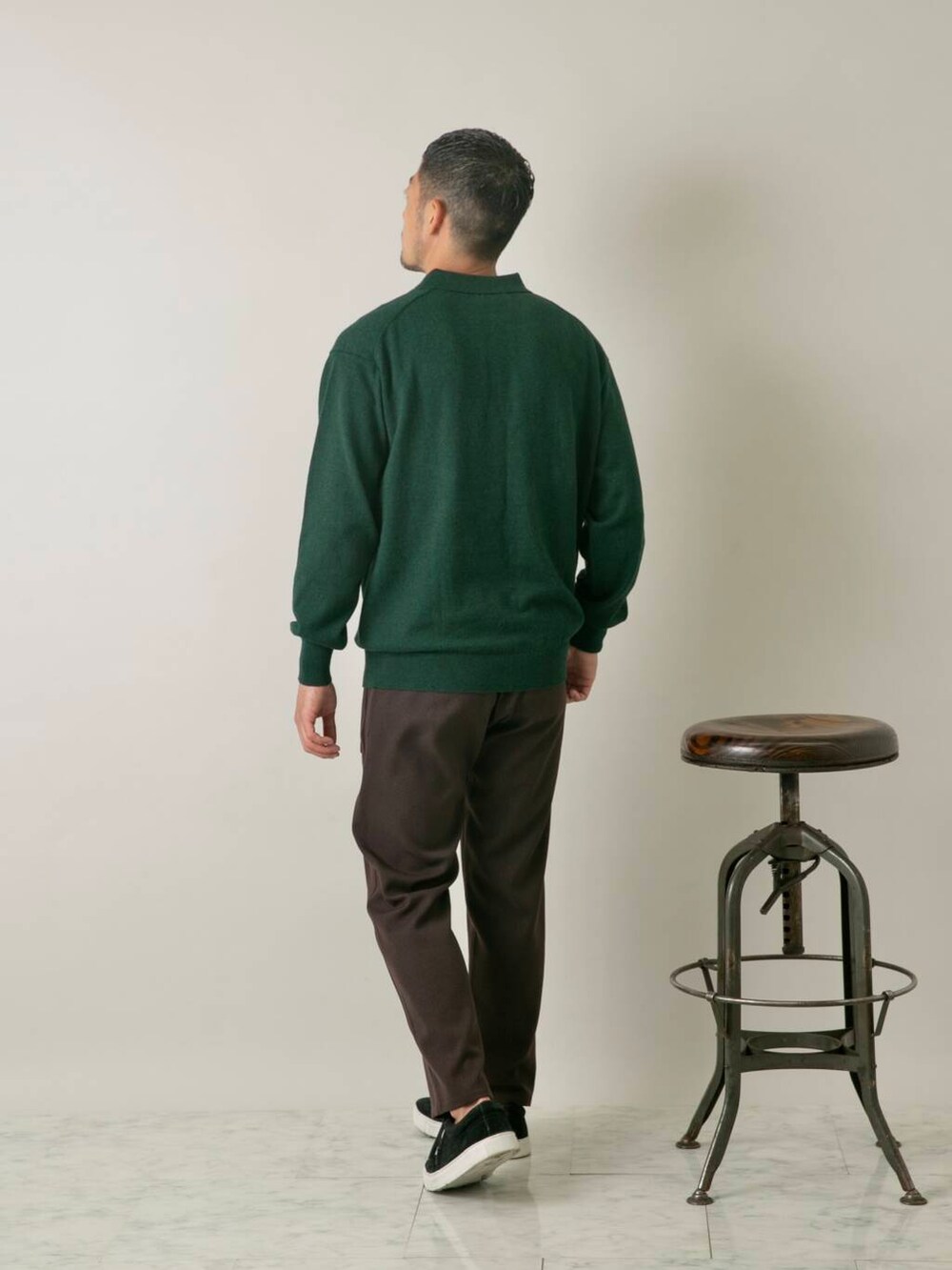 ニットポロコーデ。