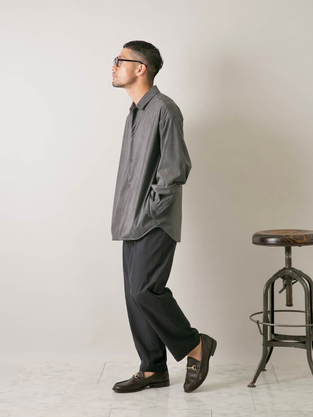 スウェード調の起毛素材やサイズのポケットで、シャツとしてはもちろん秋の羽織としても優秀な1着。