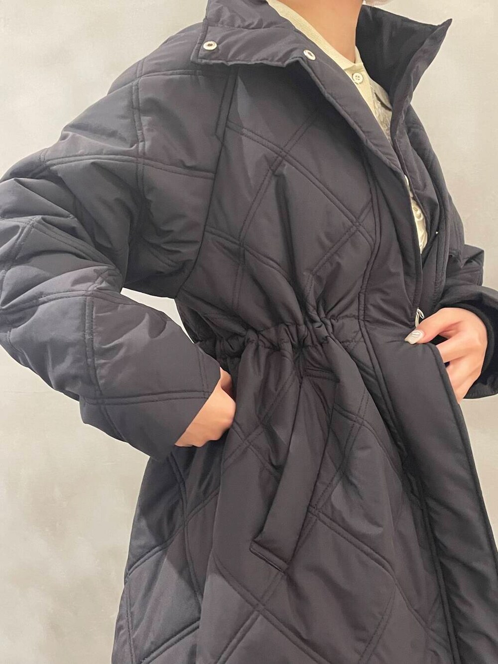 首元から膝先まで防寒できるこのキルティングスタンドコート!!
