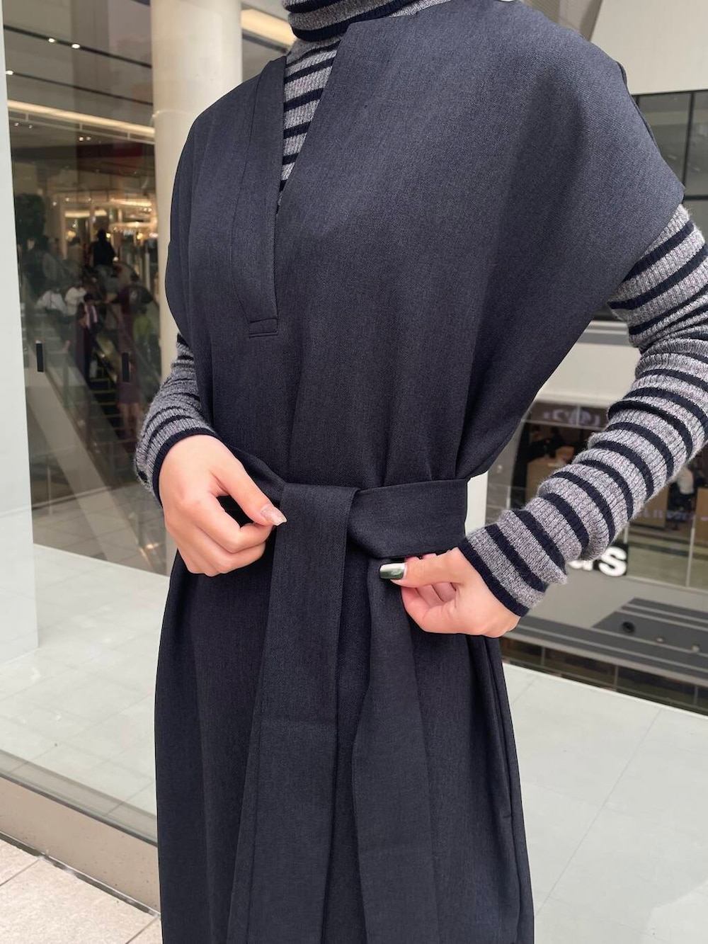 このワンピース、ウエストを絞れたり、首に巻く事ができるようにと場面によって使い分けることができるようになっております!!