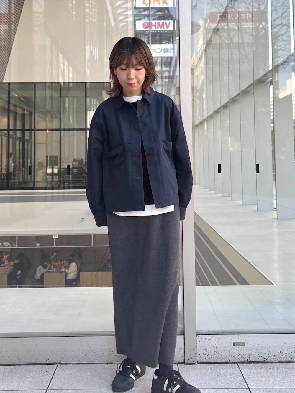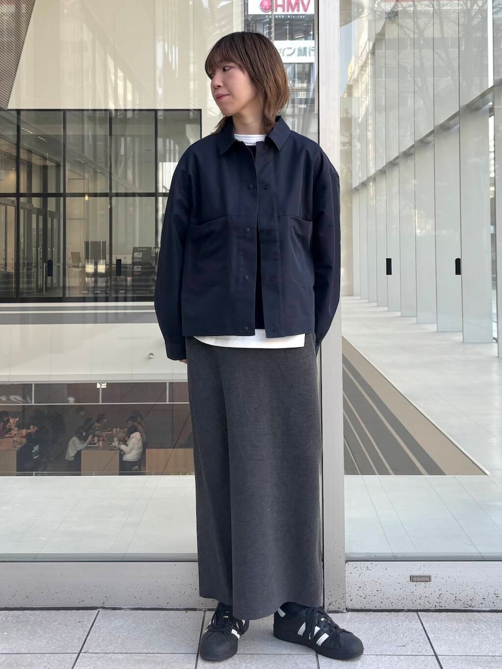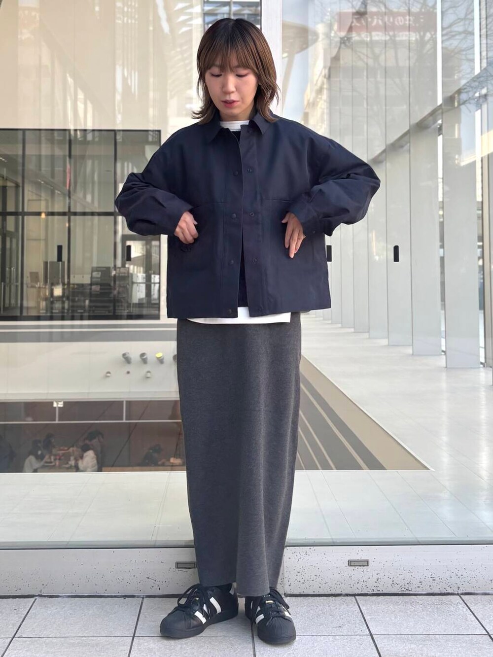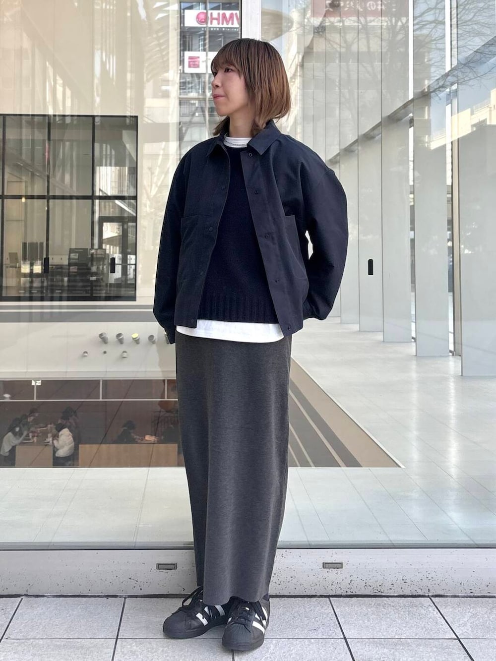 メンズライクなジャケットに、ニットのスカートを合わせました🙂↕️