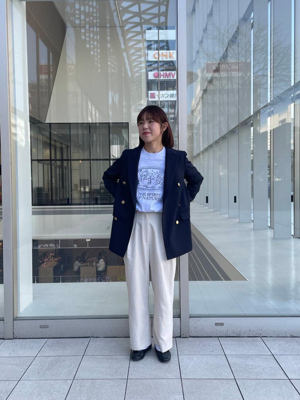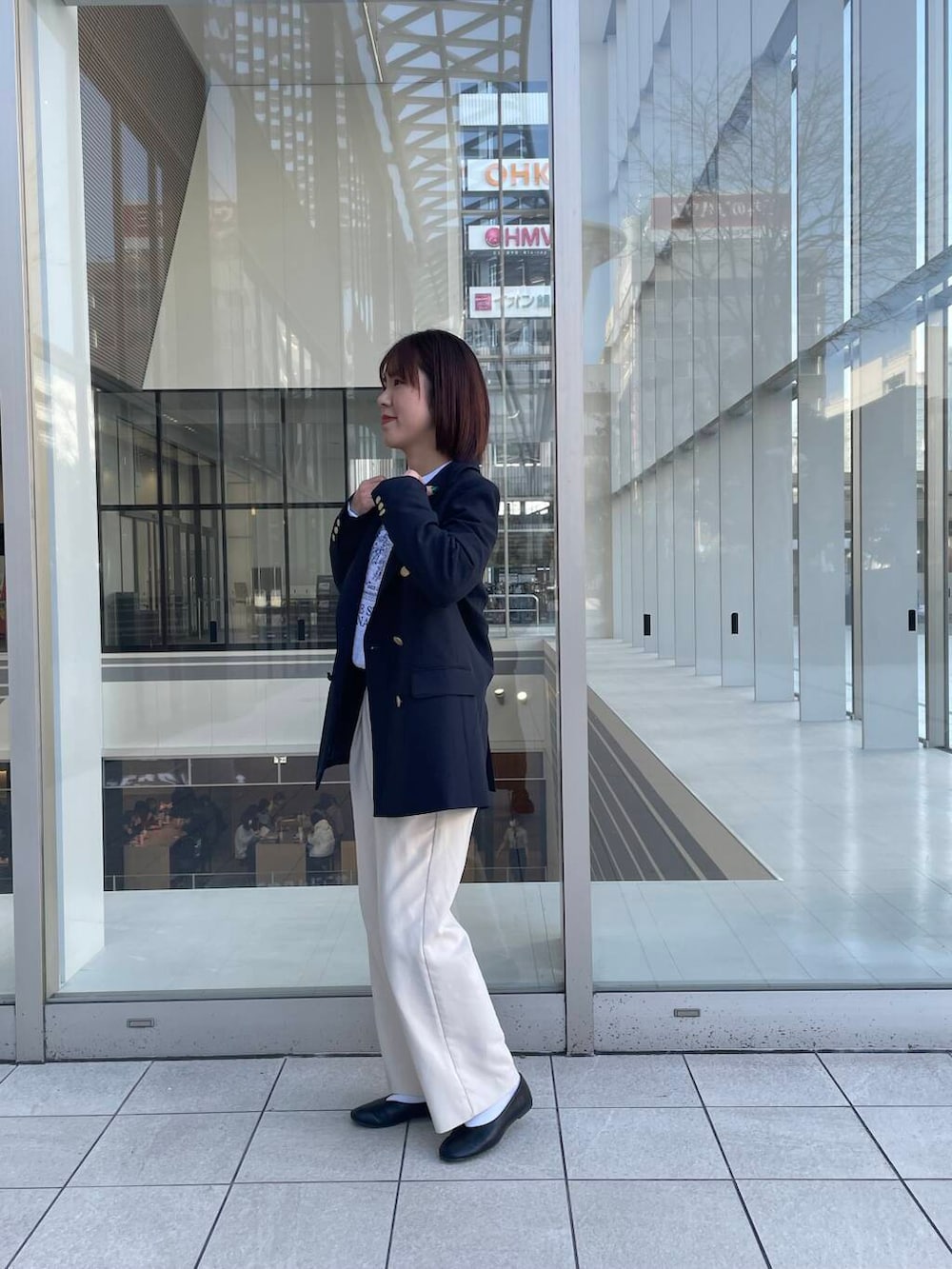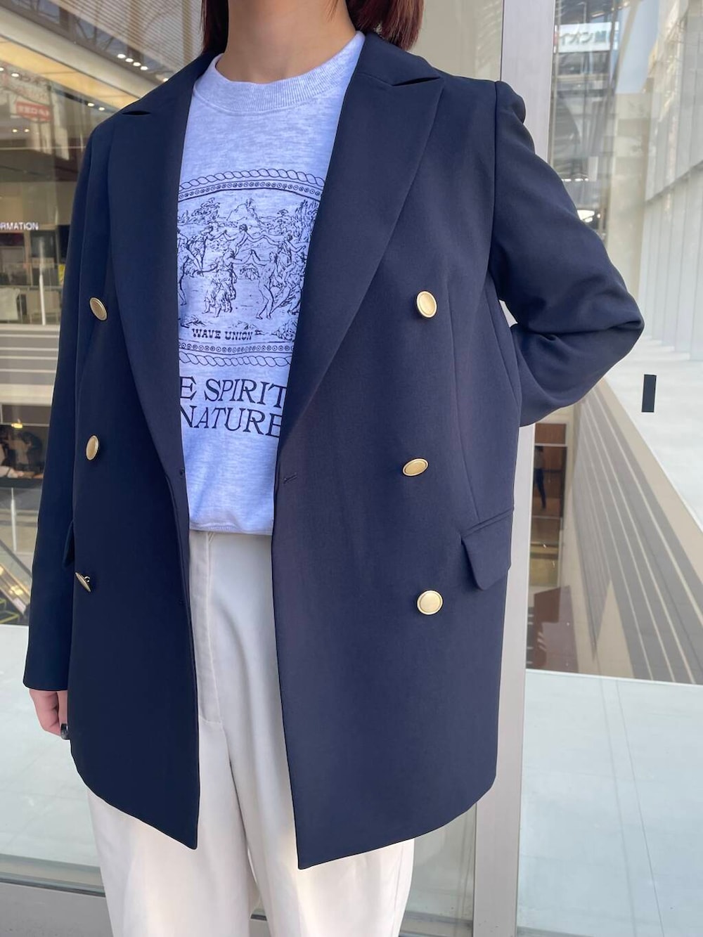こちらのブレザージャケットなのですがサイズ展開がありまして、身長やコーディネートに合わせてお買い求めすることができます!
