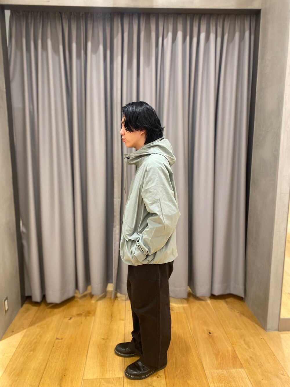 モックネックの白Tはインナーなどなんでも使いやすいです。チノパンブラックの色味が良くて最高です。履きやすくてワイドなシルエットで春におすすめです。
