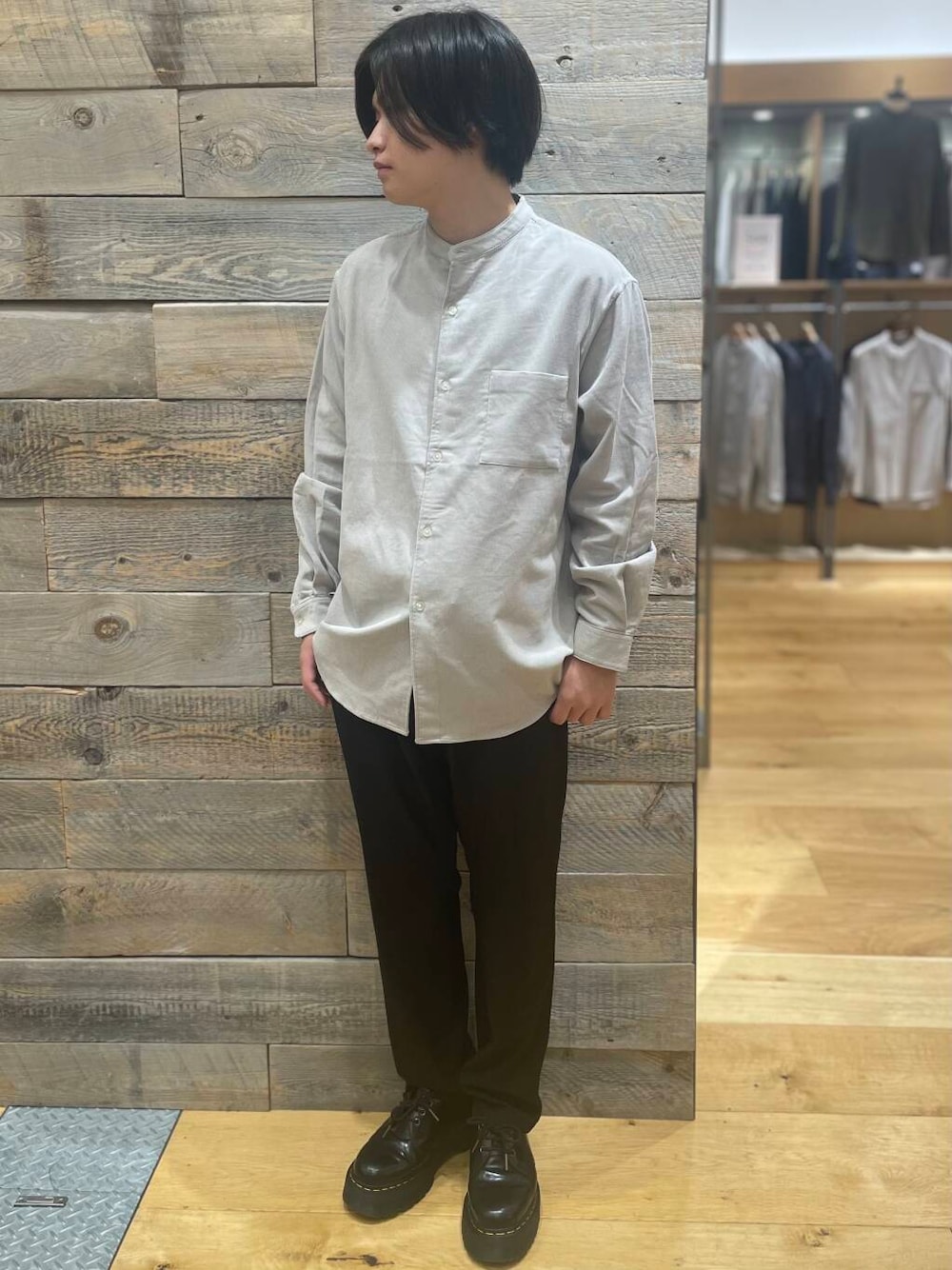 一枚でも様になるコーデュロイバンドカラーシャツ蓄熱機能もある為冬はインナーで活躍してくれる一枚です。