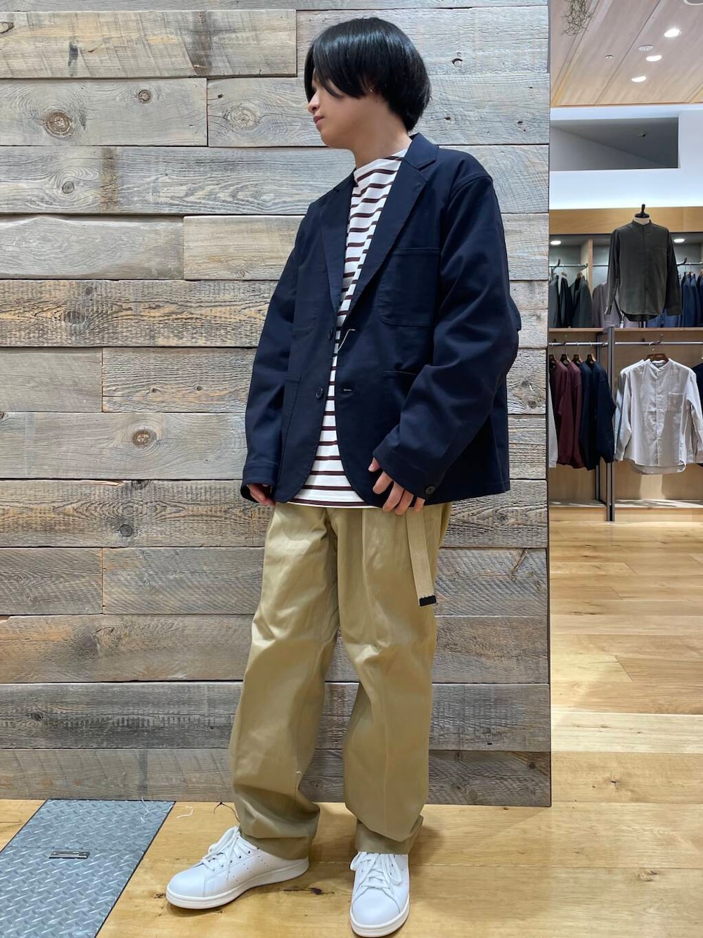 今回はワークジャケットとチノで、カジュアルに合わせてみました。