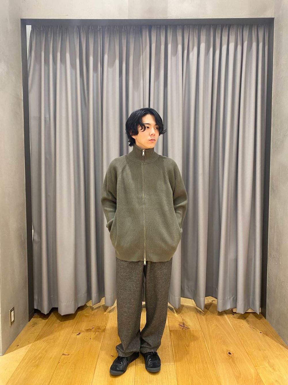 ドライバーズニットです。シルエットは割とタイトなのでLサイズを着用して少しゆったり着ています。暖かいです。少し青みのあるグレーがめちゃくちゃかっこいいです。ジップも2個付いているのでシルエットも変えれて楽しいです。