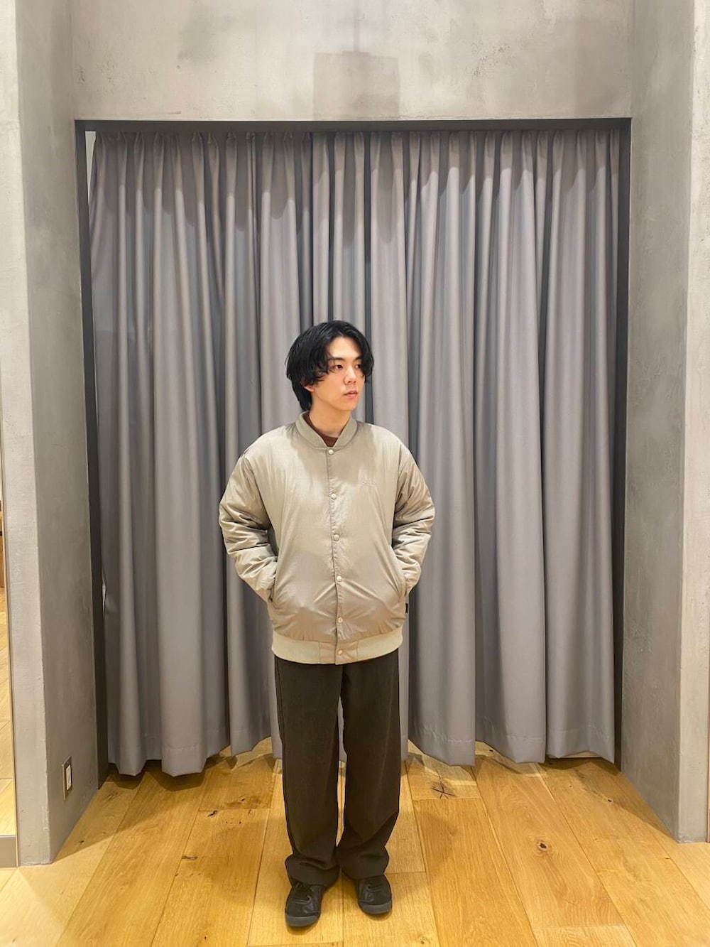 質感がかっこいいです。グレーの色味が今っぽくて良いです。ダウンのボンバージャケットは一つ持っておくとコーディネートの幅が広がりそうです。
