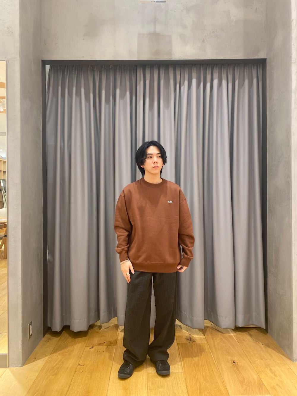 フォックスのロゴが入っていて素敵で可愛いです。ブラウンの色味も綺麗です。メンズもレディースも着ることができると思います。