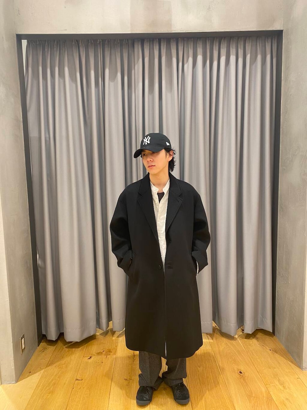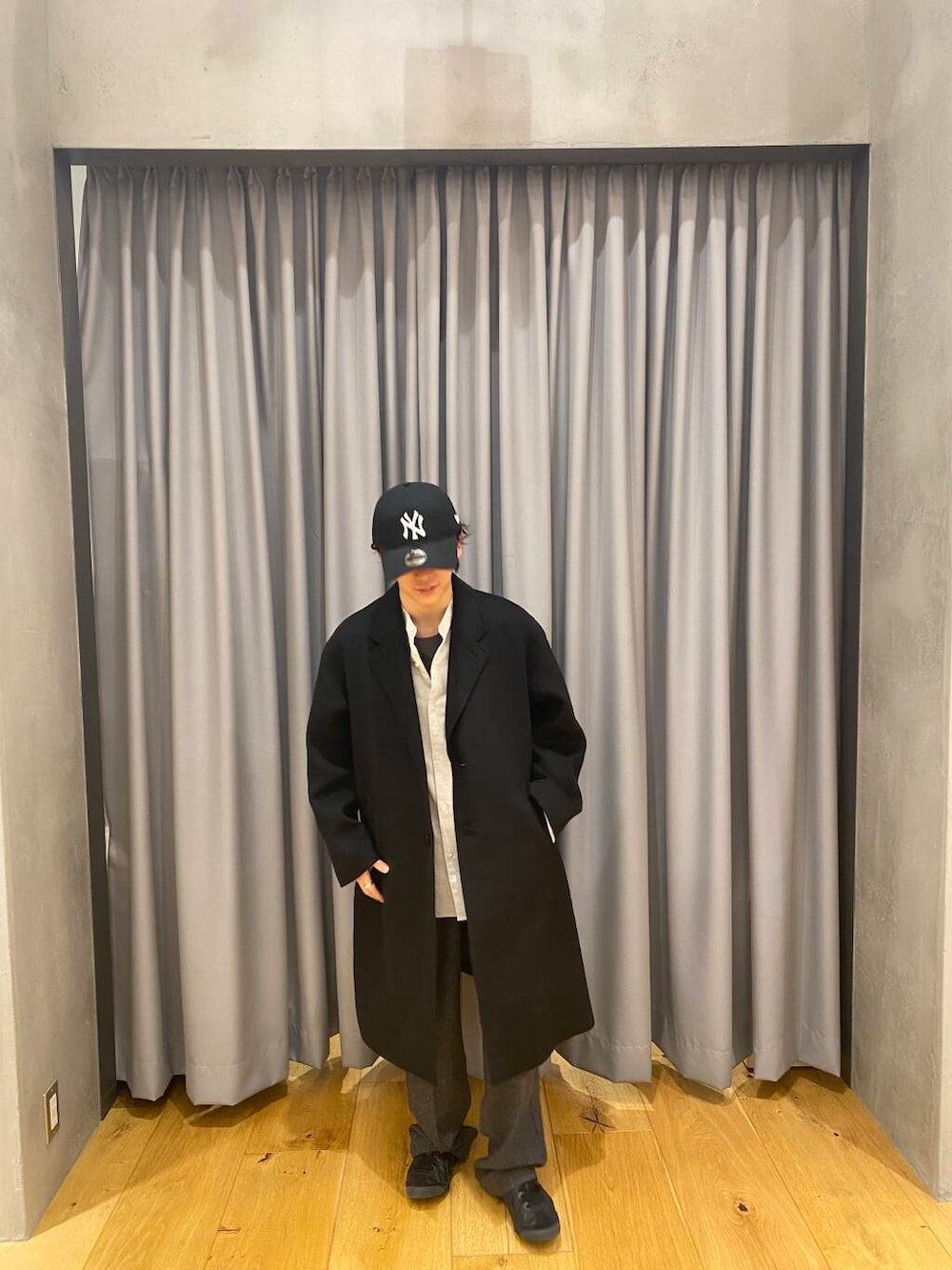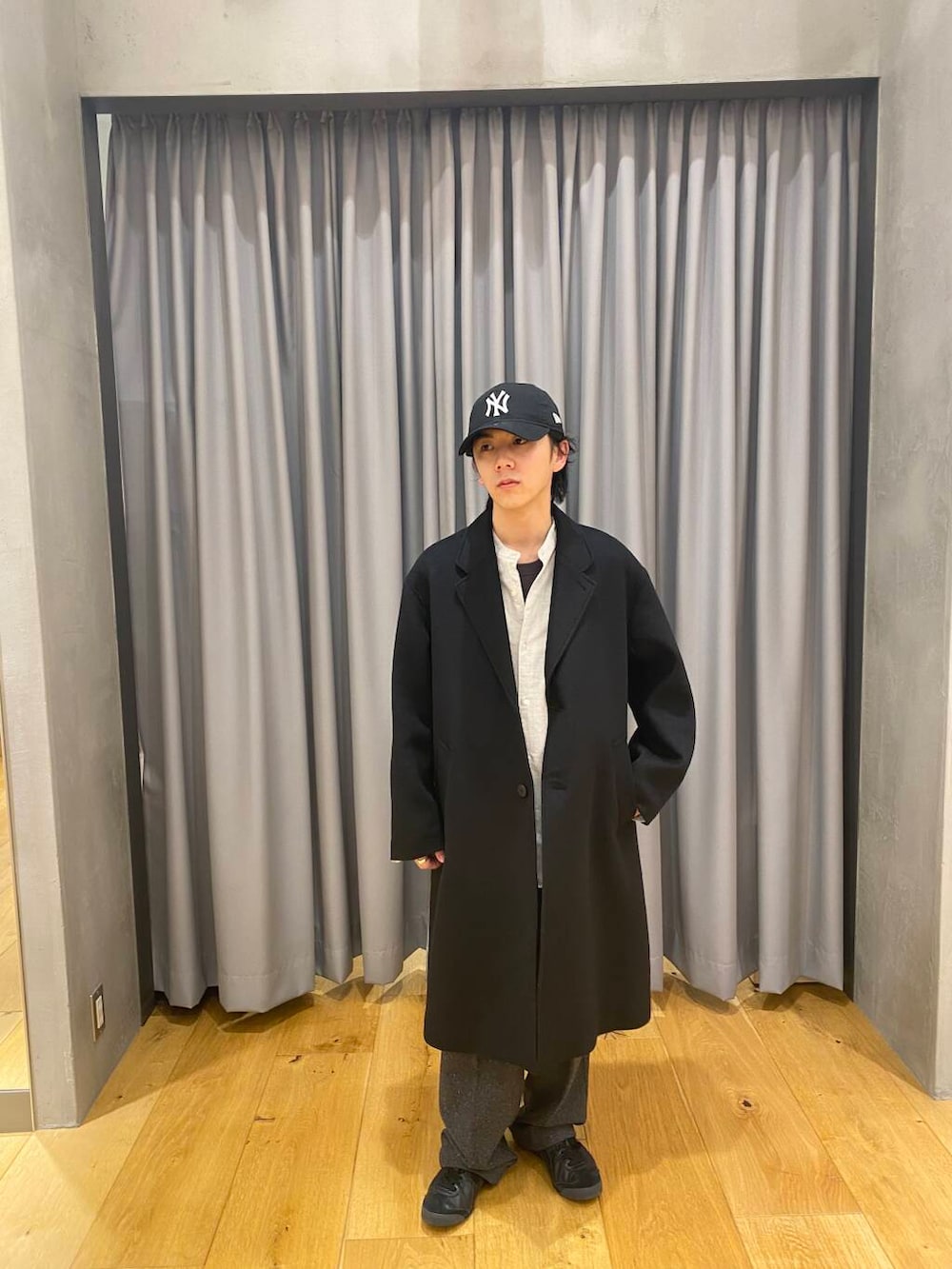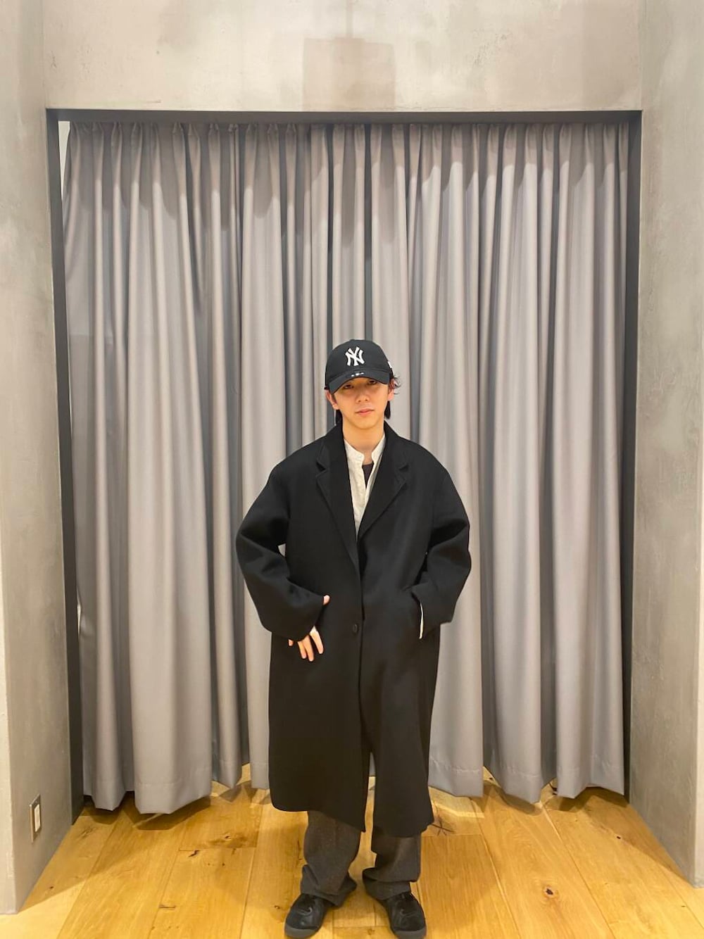 オーバーなサイズ感のチェスターコートにニューエラのキャップを合わせました。シティ感があって好きなコーデです。