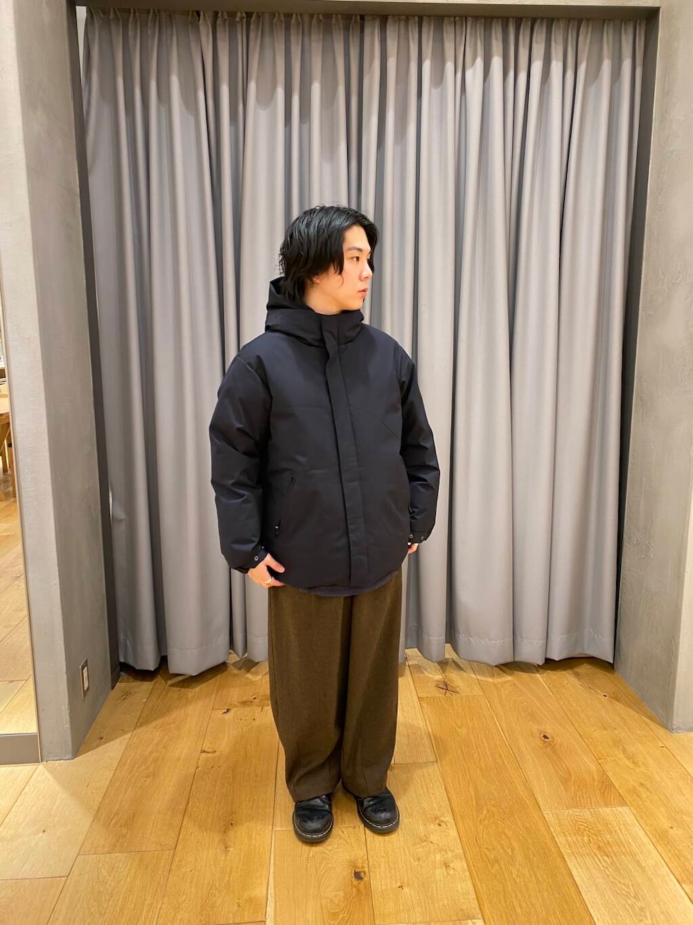 DOORSから出ているダウンです。ボリューム感があります、かなり暖かいです。色味も落ち着いてるので冬に最適おすすめです。ウール混のバルーンパンツは万能です。