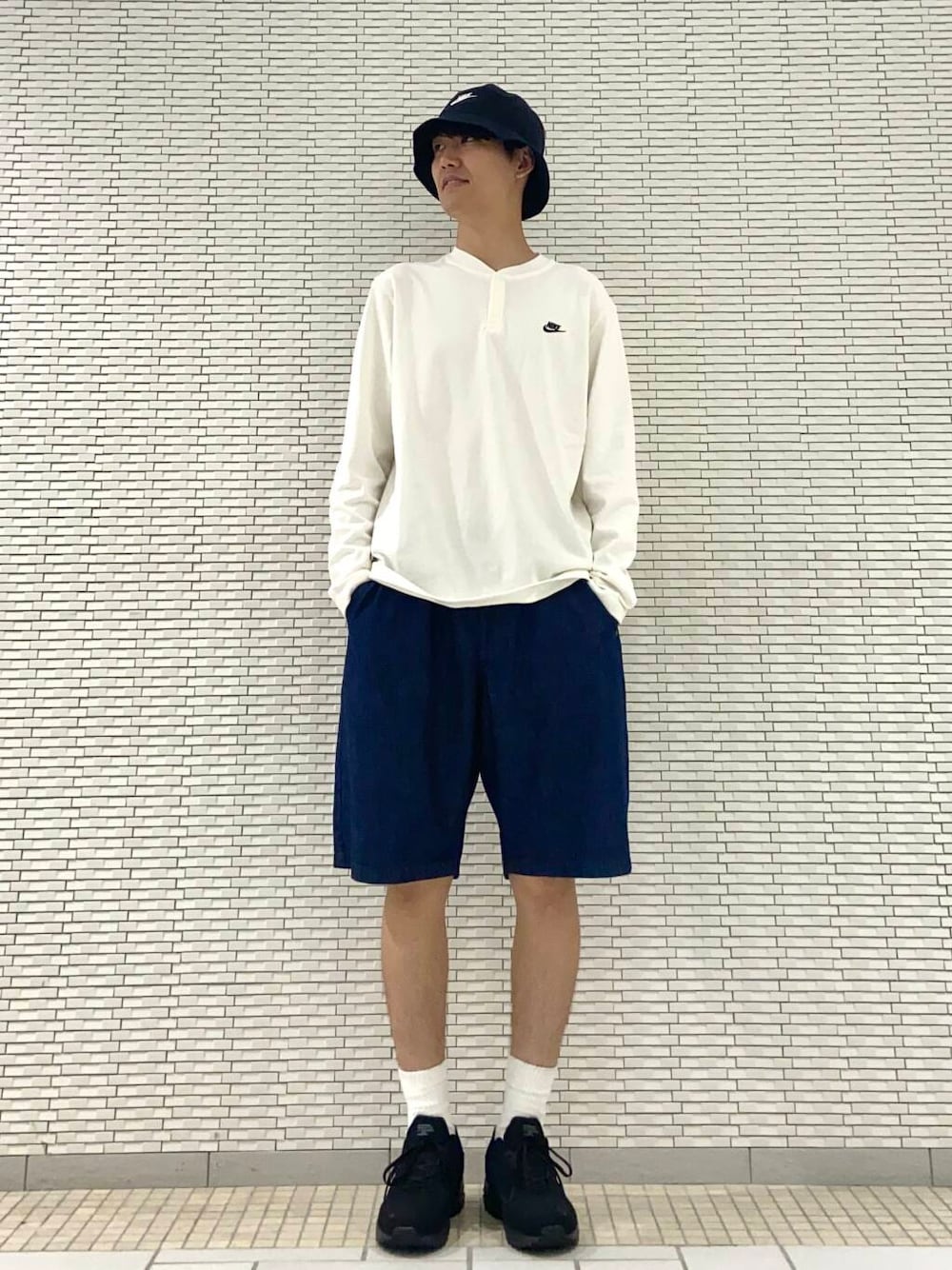 ロンTとショーツの晩夏のカジュアルコーディネートです。
