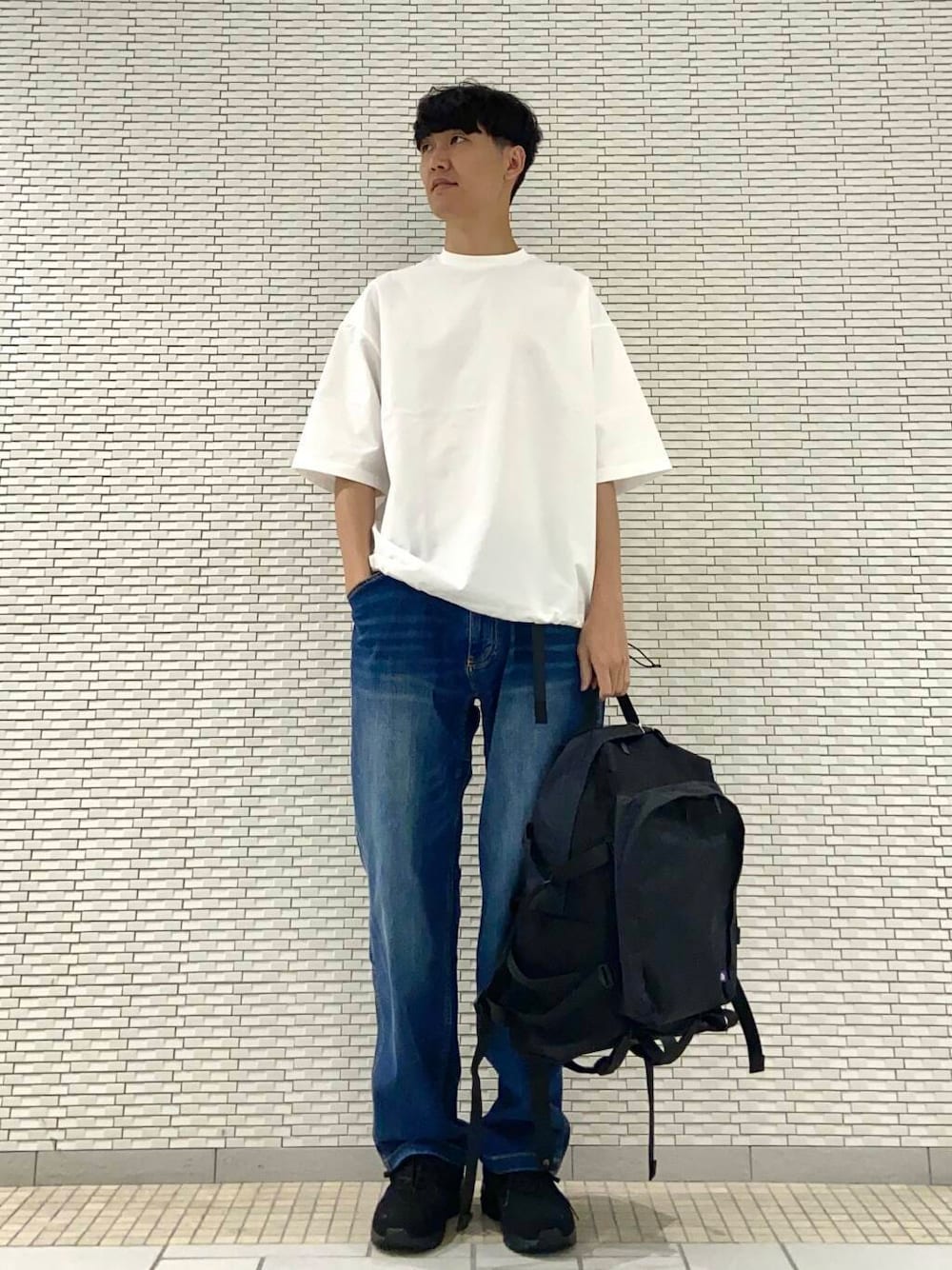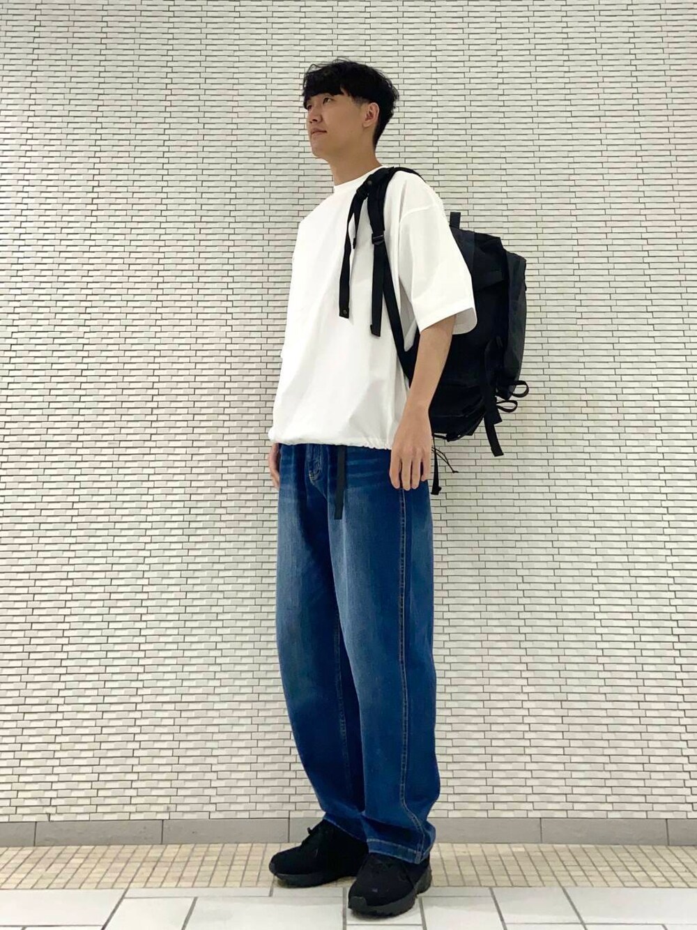 ゆったりめなTシャツにワイドデニムで合わせることで