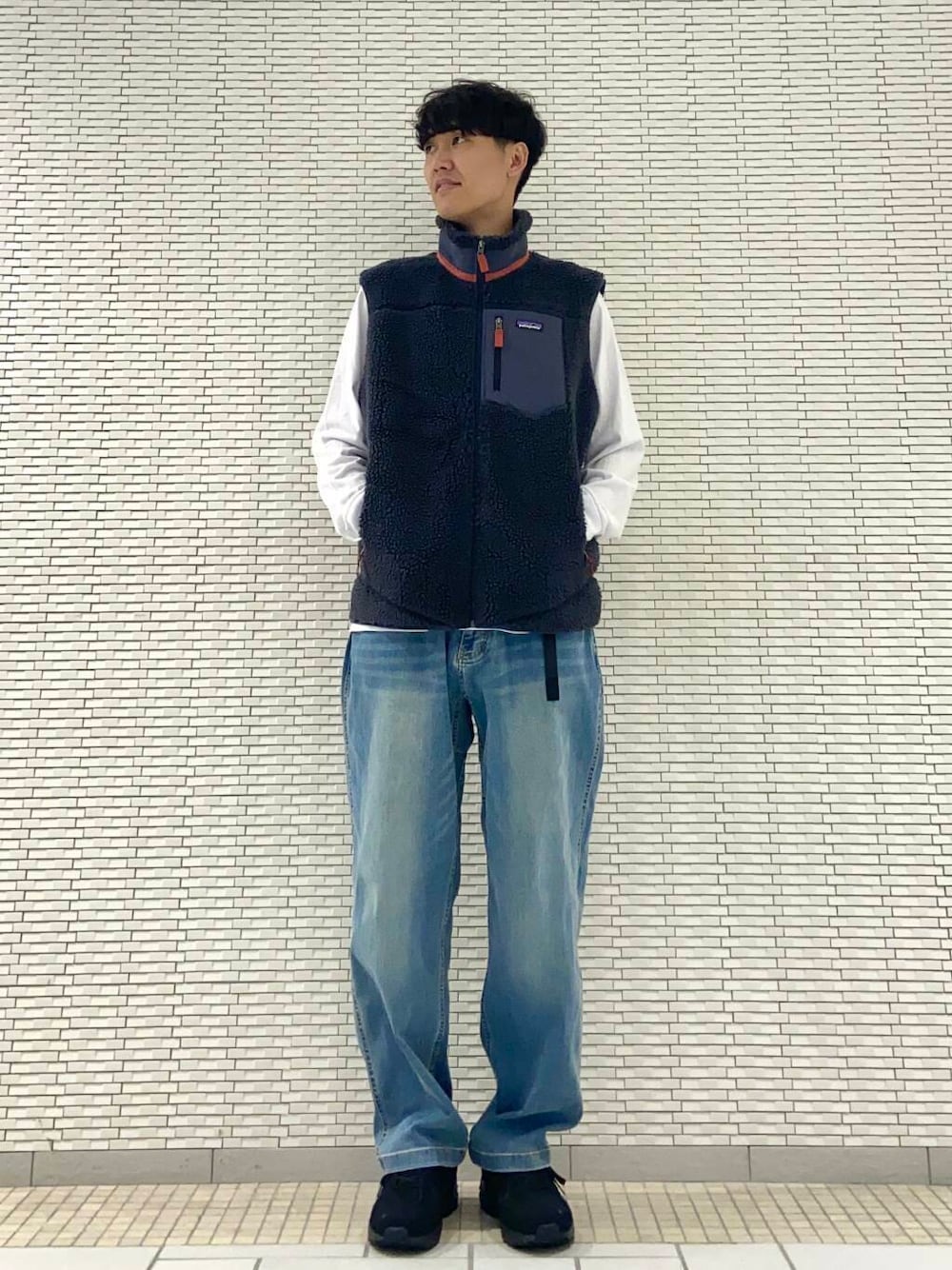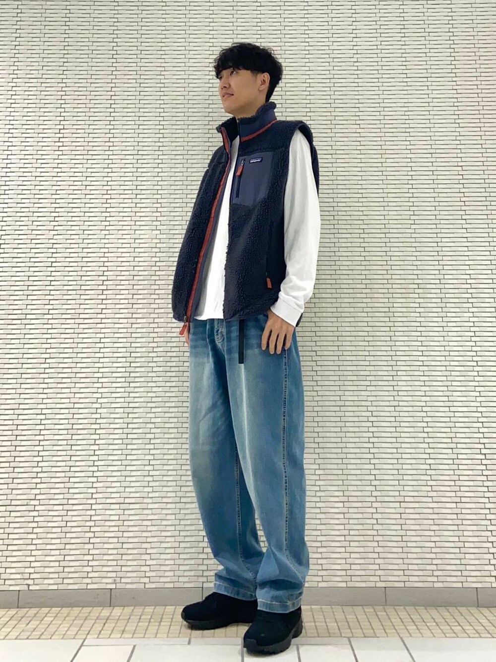 秋冬で使えるベストアイテムのカジュアルコーディネートです。