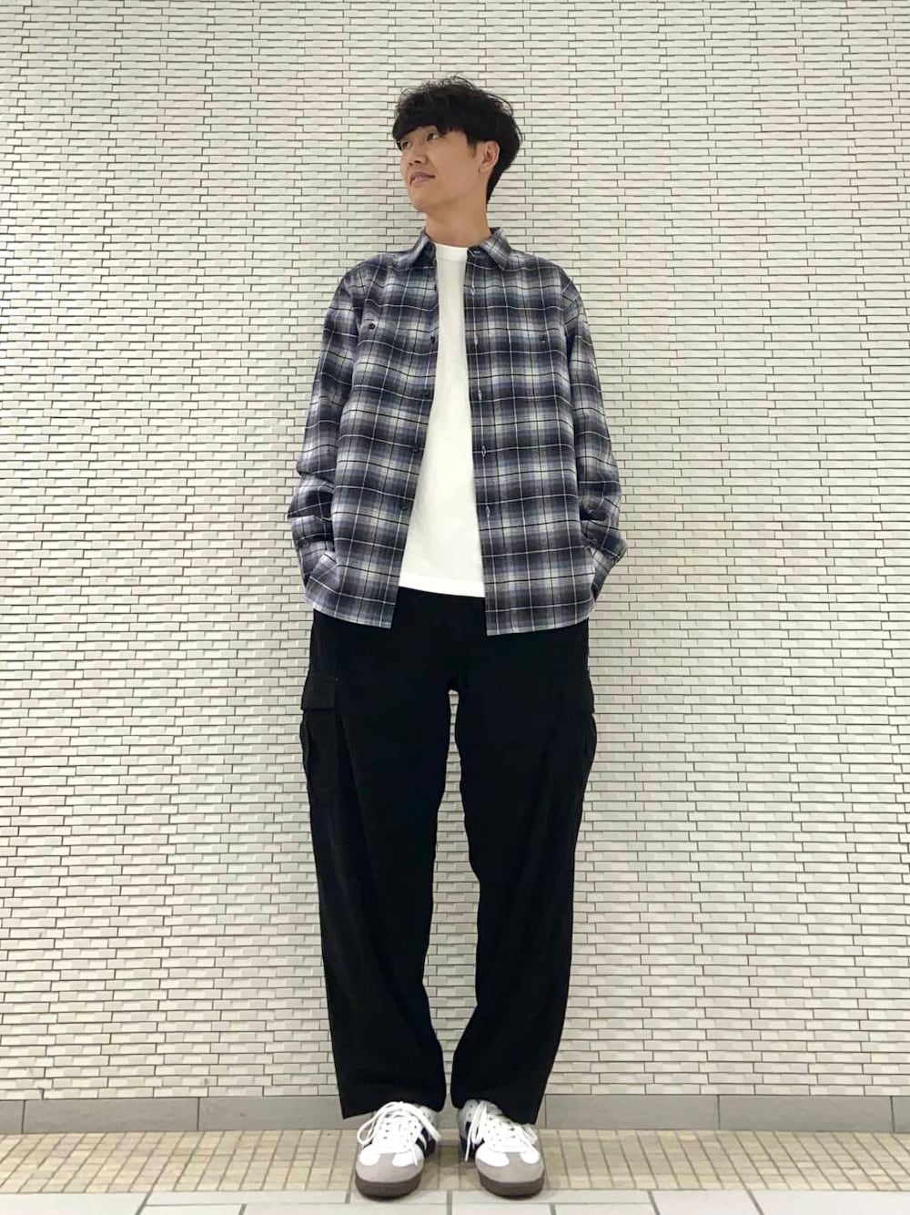 ビッグシルエットで合わせたシャツのカジュアルコーディネートです。