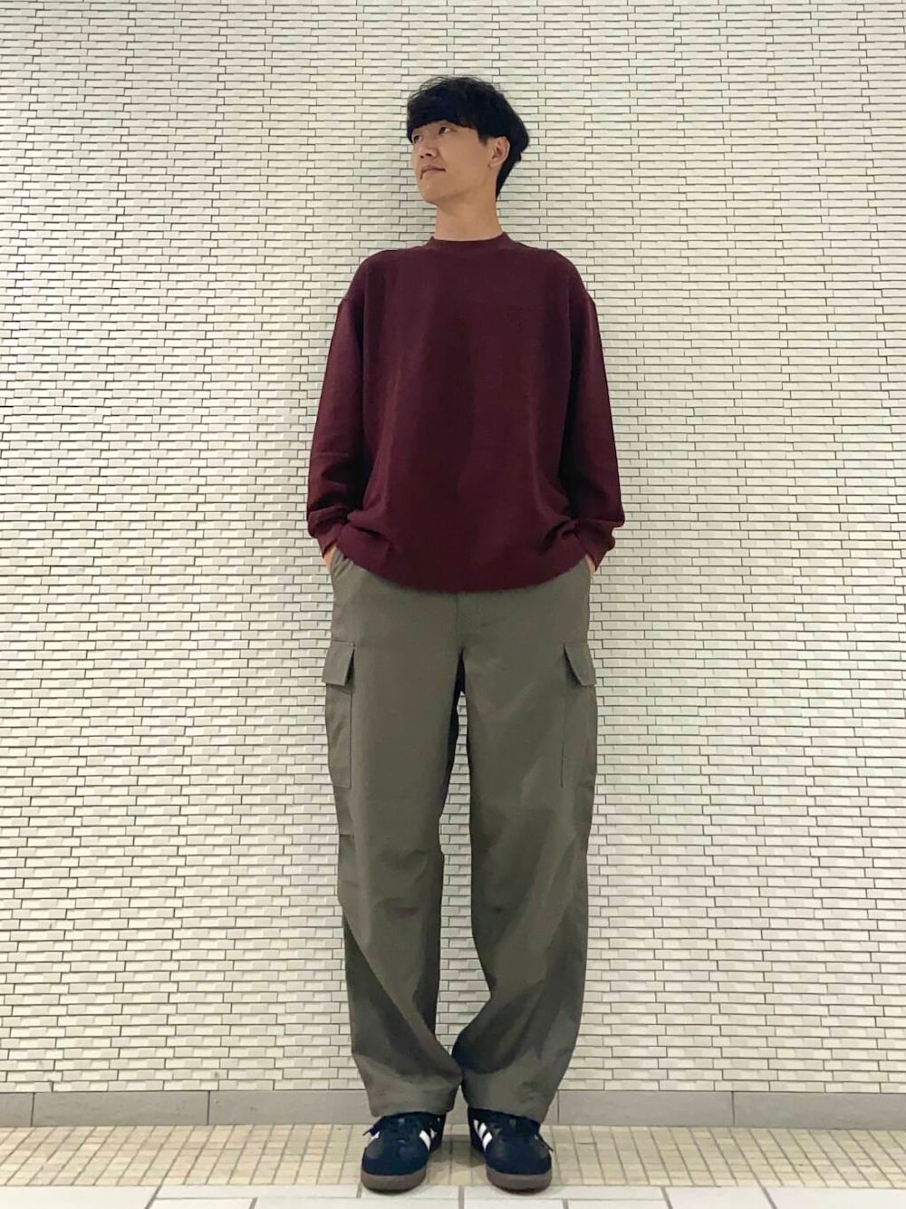 秋らしいカラーリングで合わせたシンプルコーディネートです。