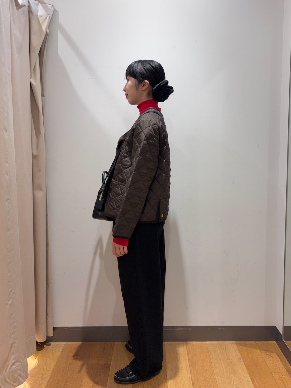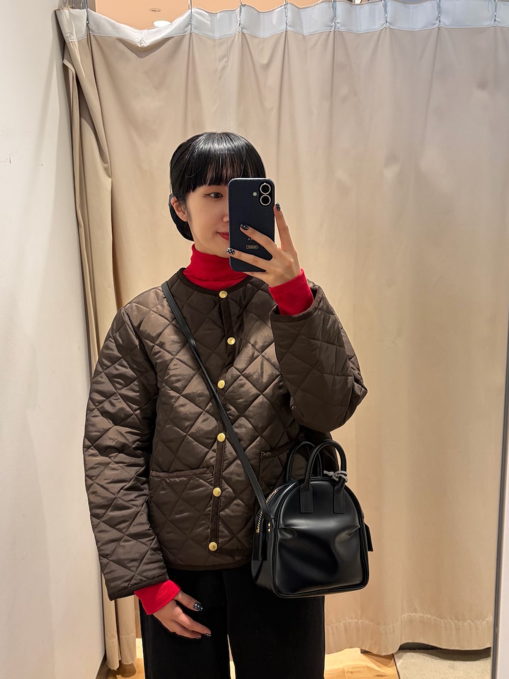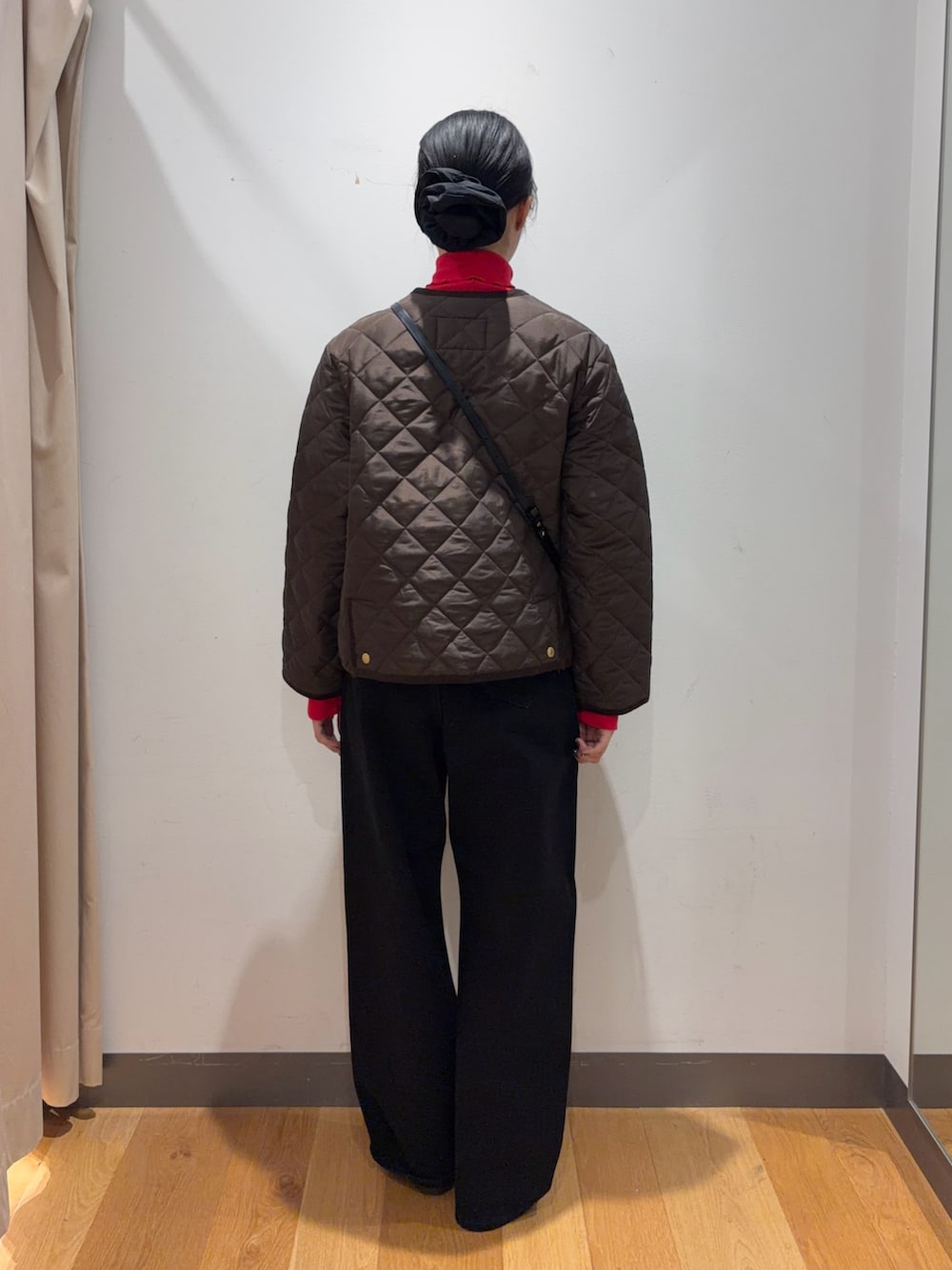 urban research別注カラーのブラウンを着用しています。キルトの形や、ボタンの色などカジュアルになりすぎず、上品な印象を与えてくれます✨