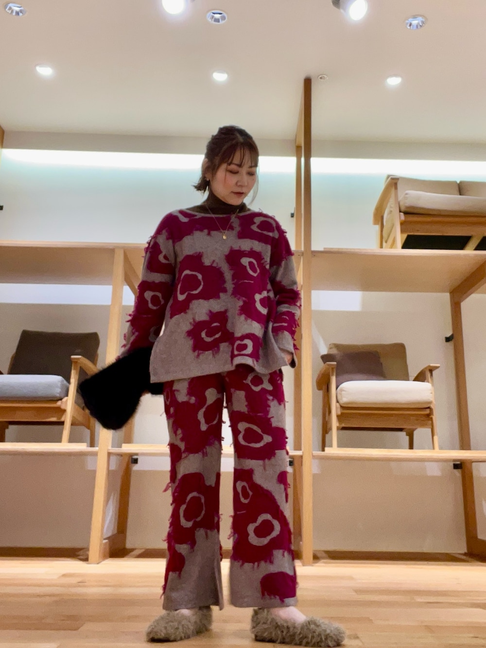 ボトムにはデザインスカートを合わせポイントに◉