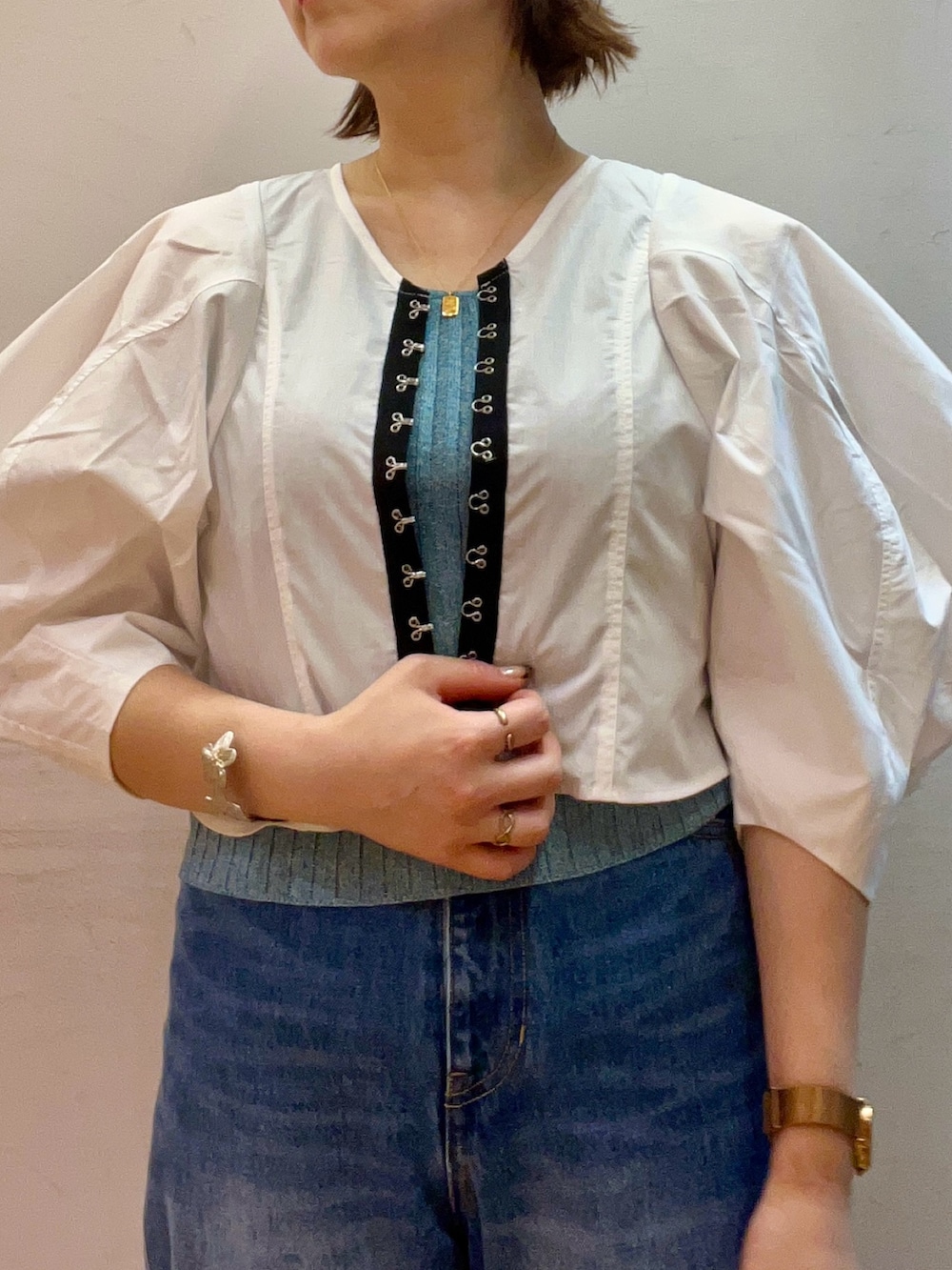 ブラウスは配色が可愛く羽織として着用しました‼︎