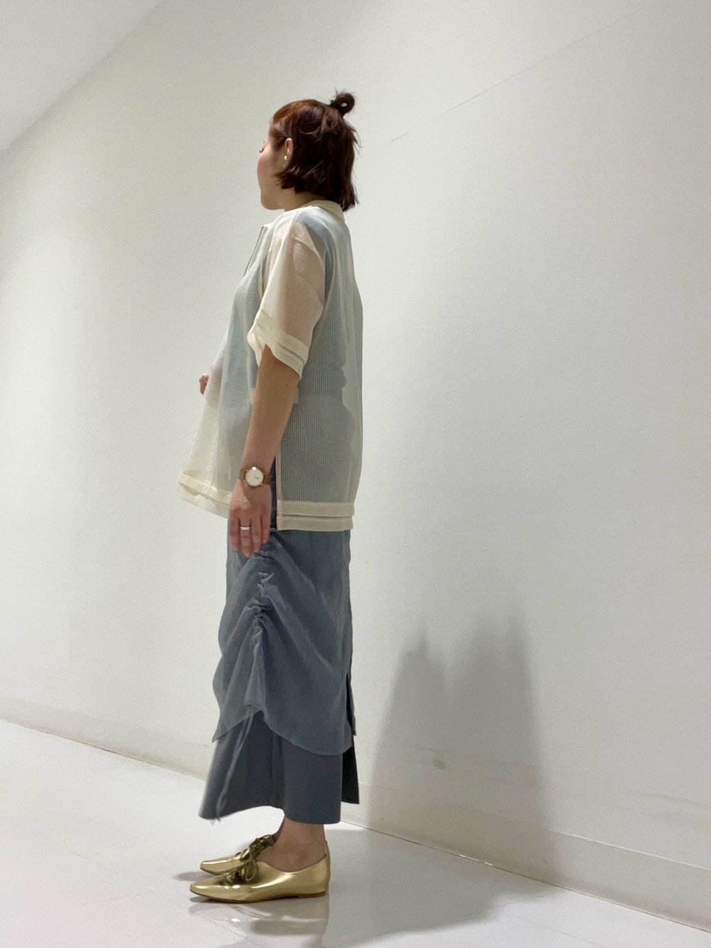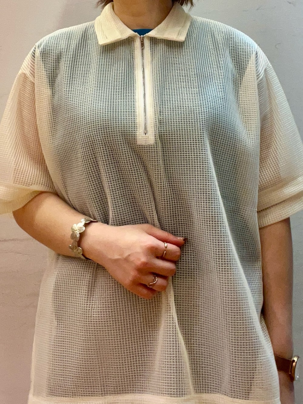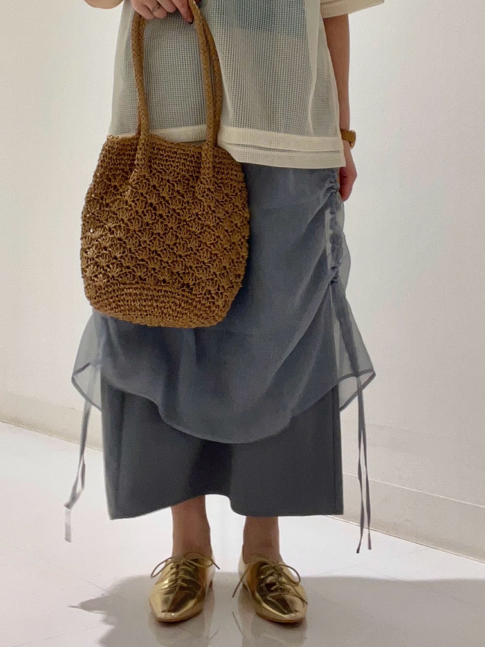 透け感のあるメッシュ素材をさらっと合わせ軽やかな装いに‼︎