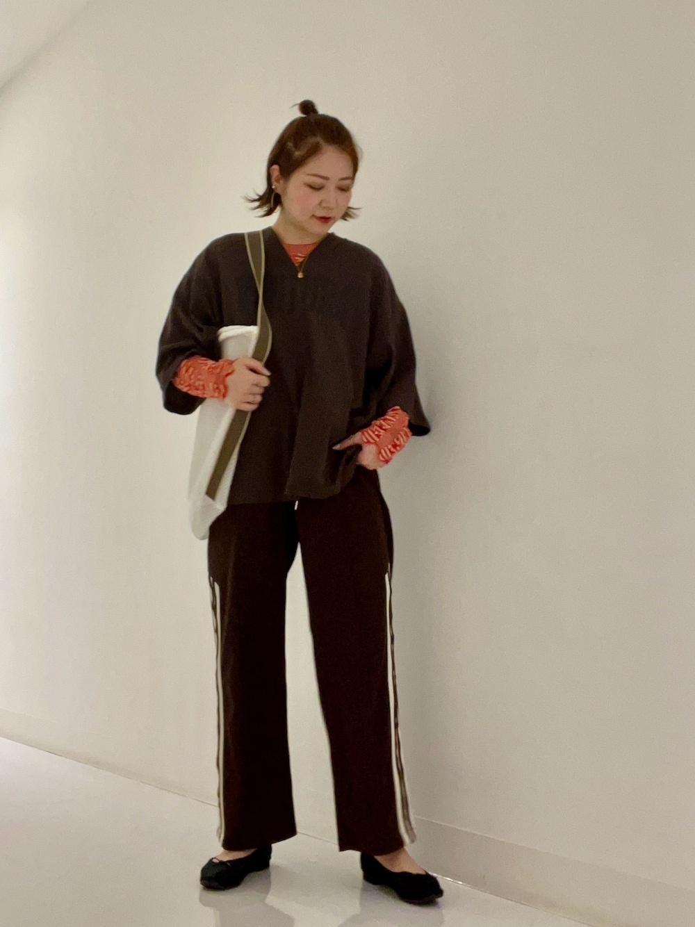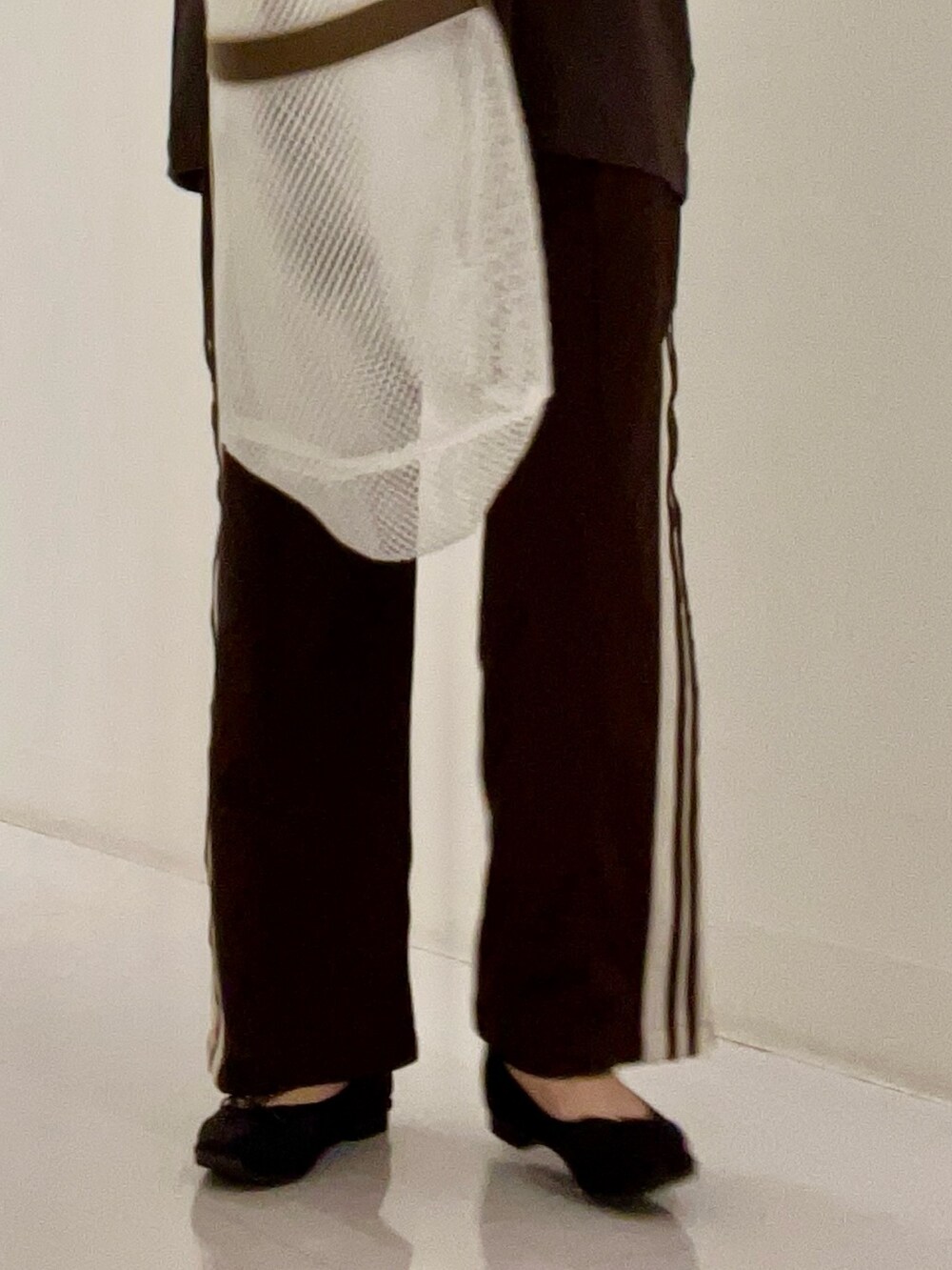 トラックパンツは旬でラインが上まで入ってないので挑戦もしやすいです◉