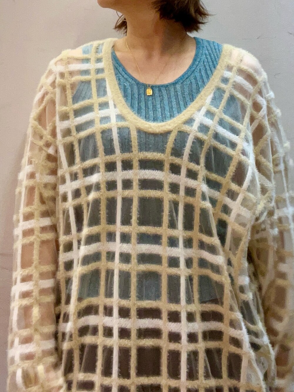 シアーなチェックプルオーバーは中物も楽しめてゆるいラフな装いに✨