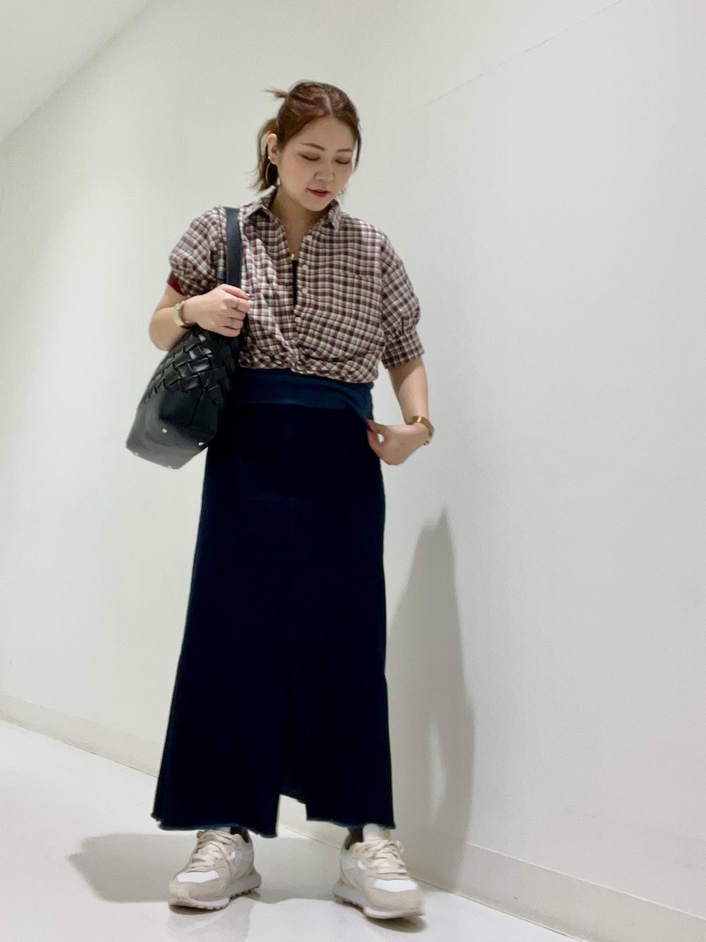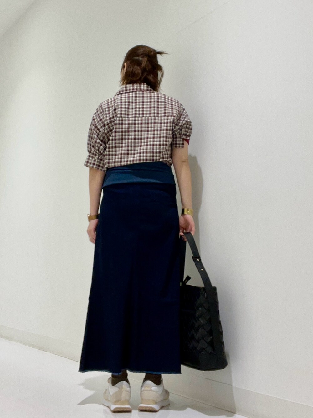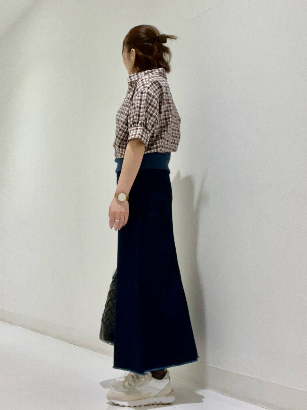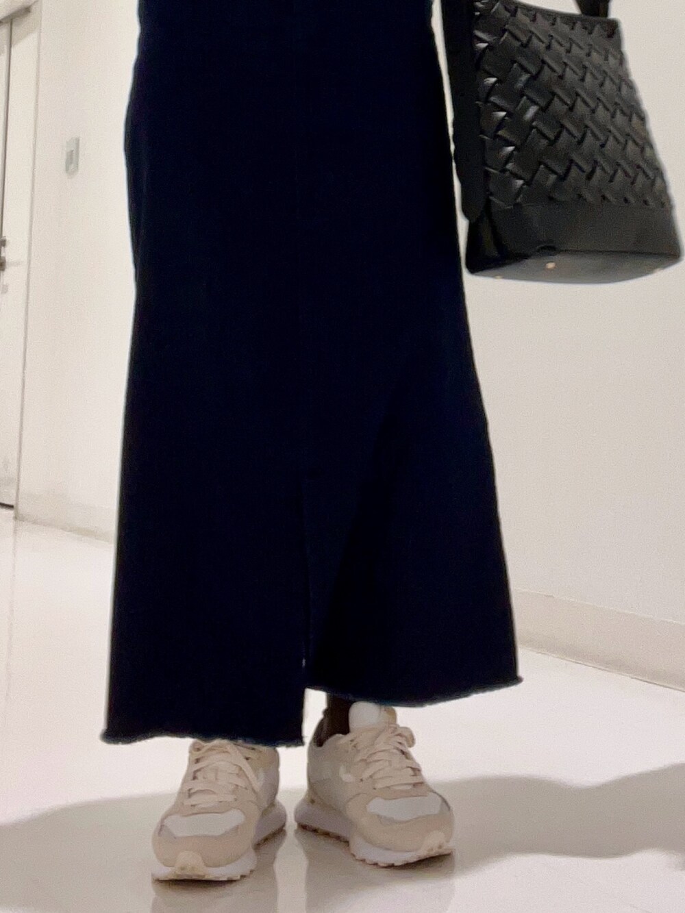 切りっぱなしのスカートと合わせカジュアルな装いに✨
