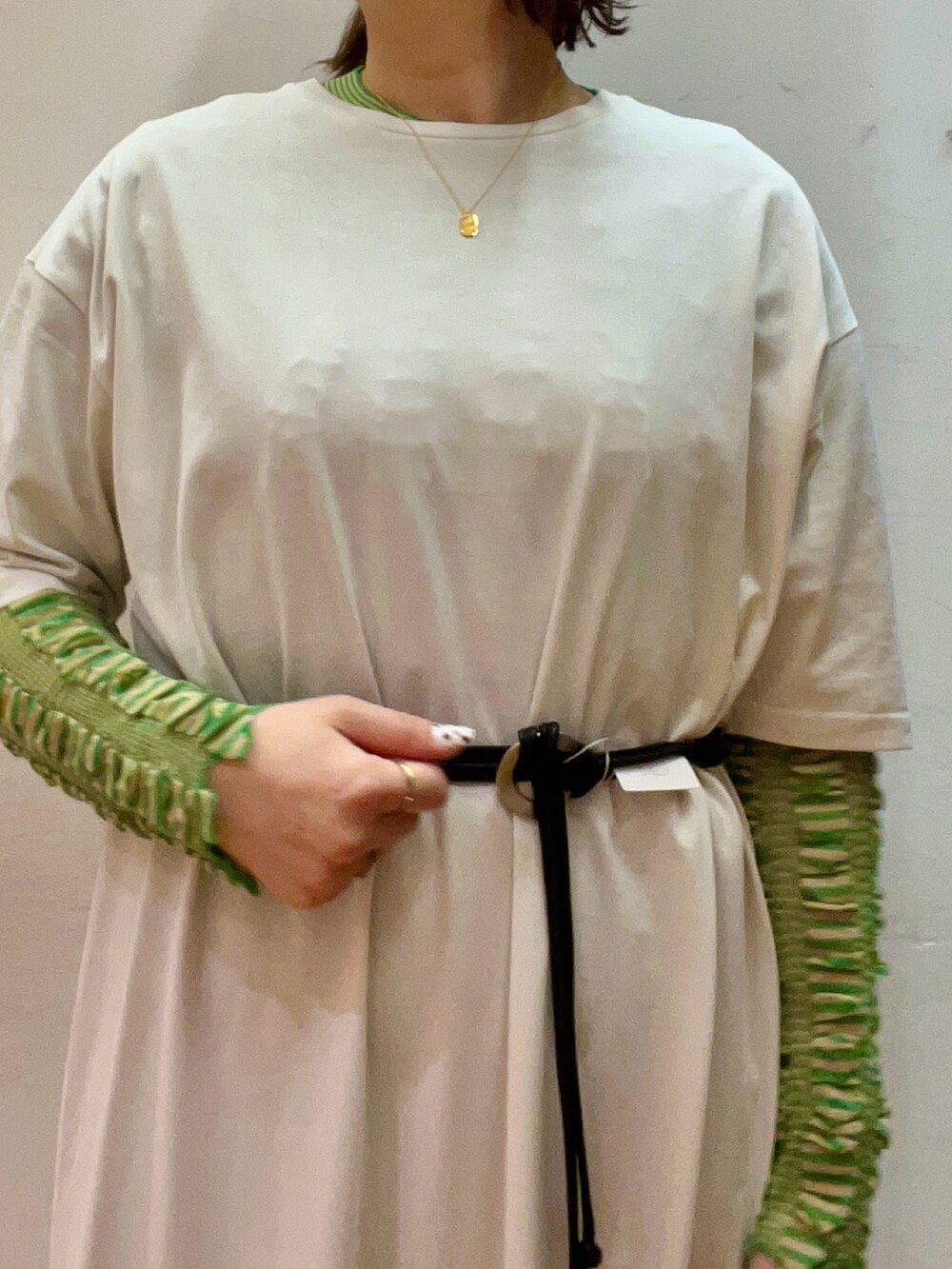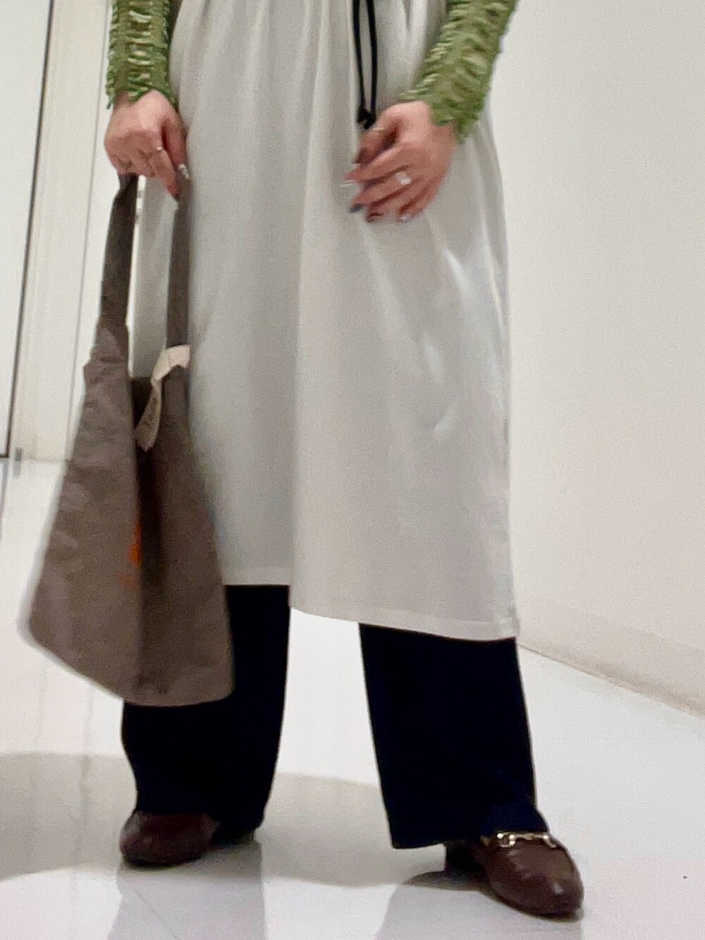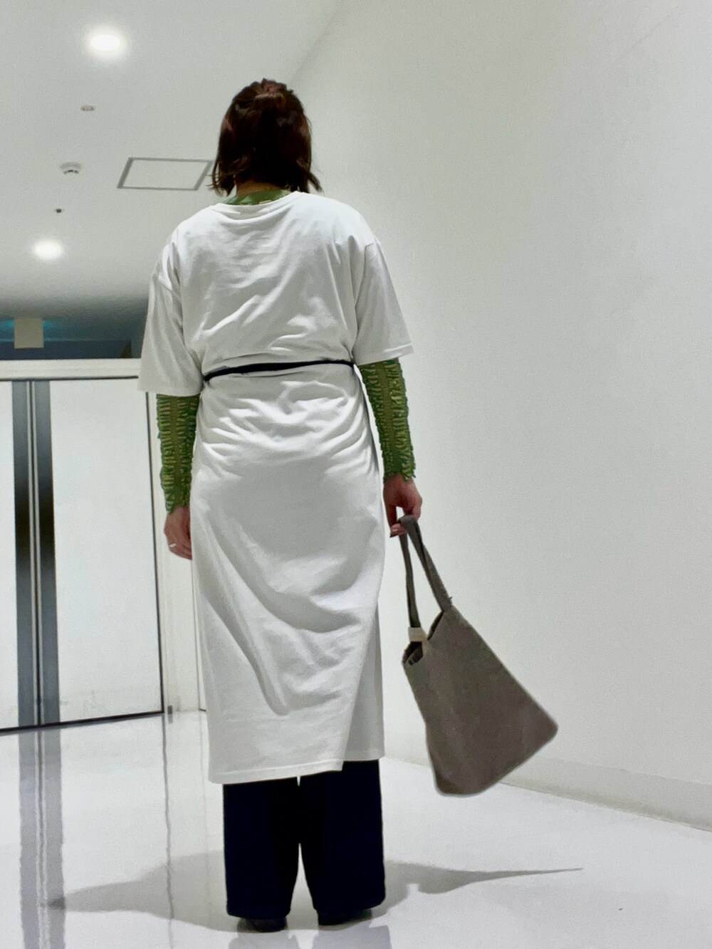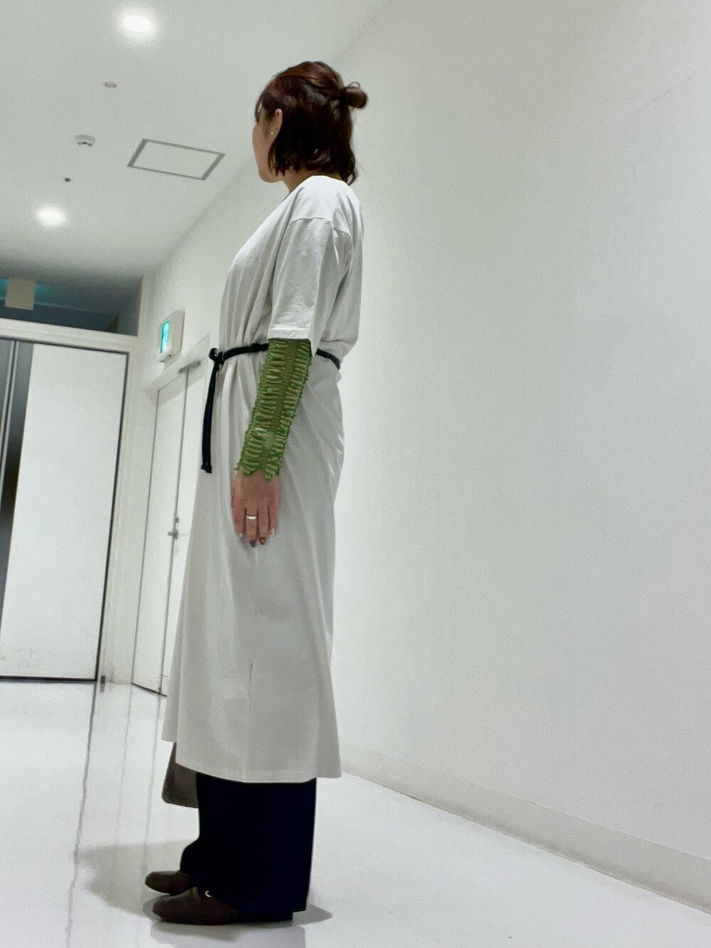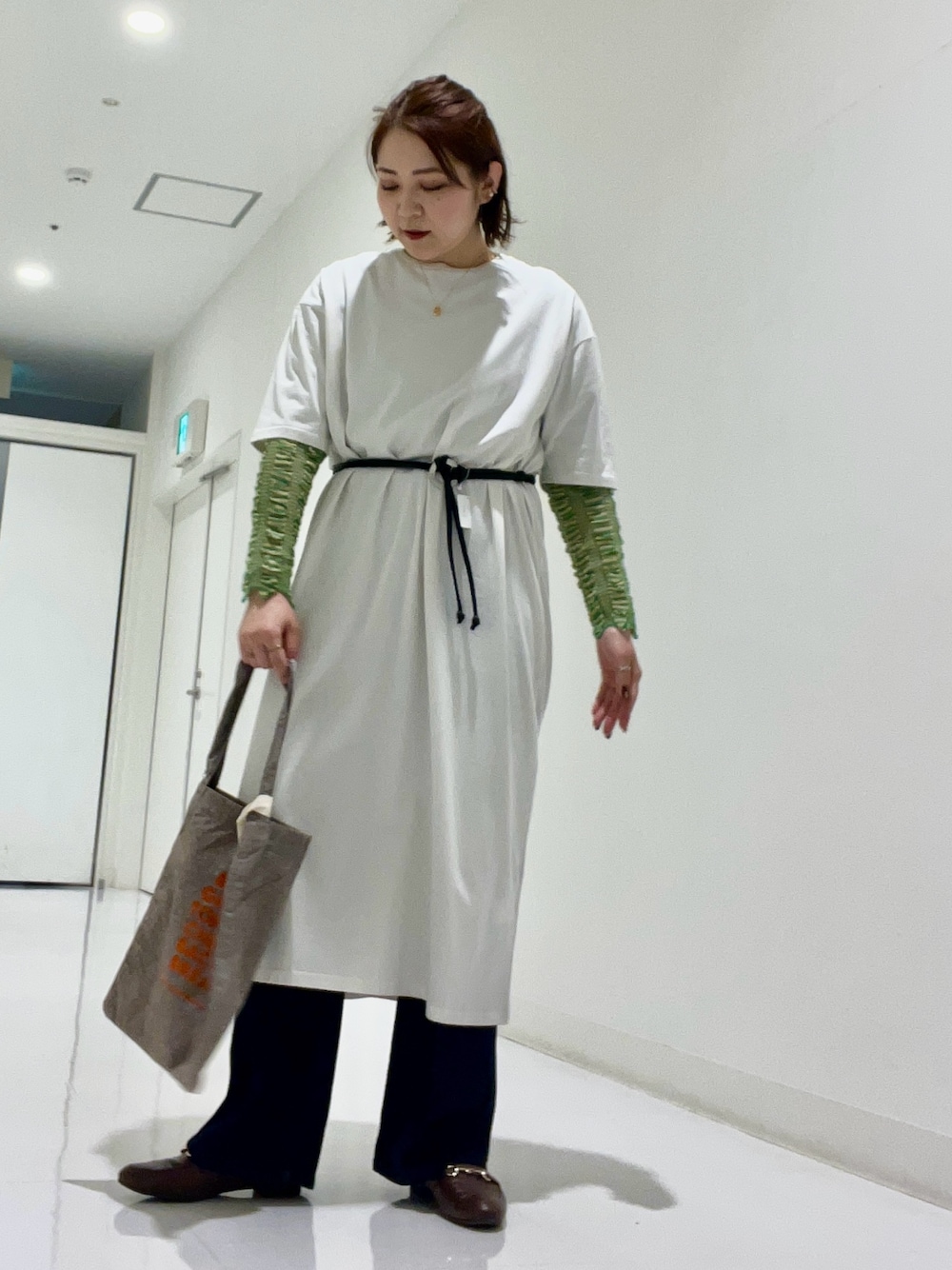 シンプルなオーバーなワンピースにはレイヤードをし秋な装いに✨