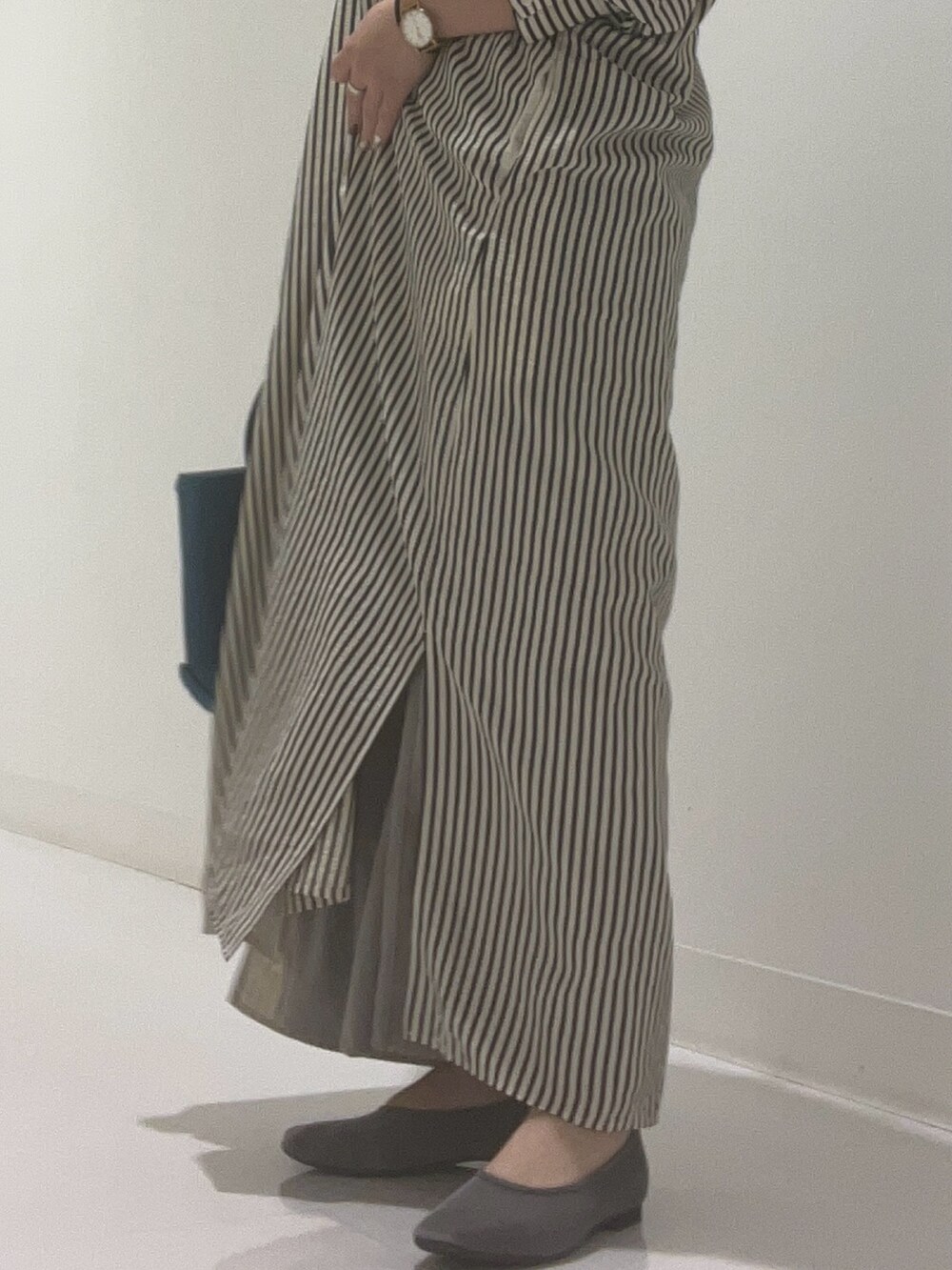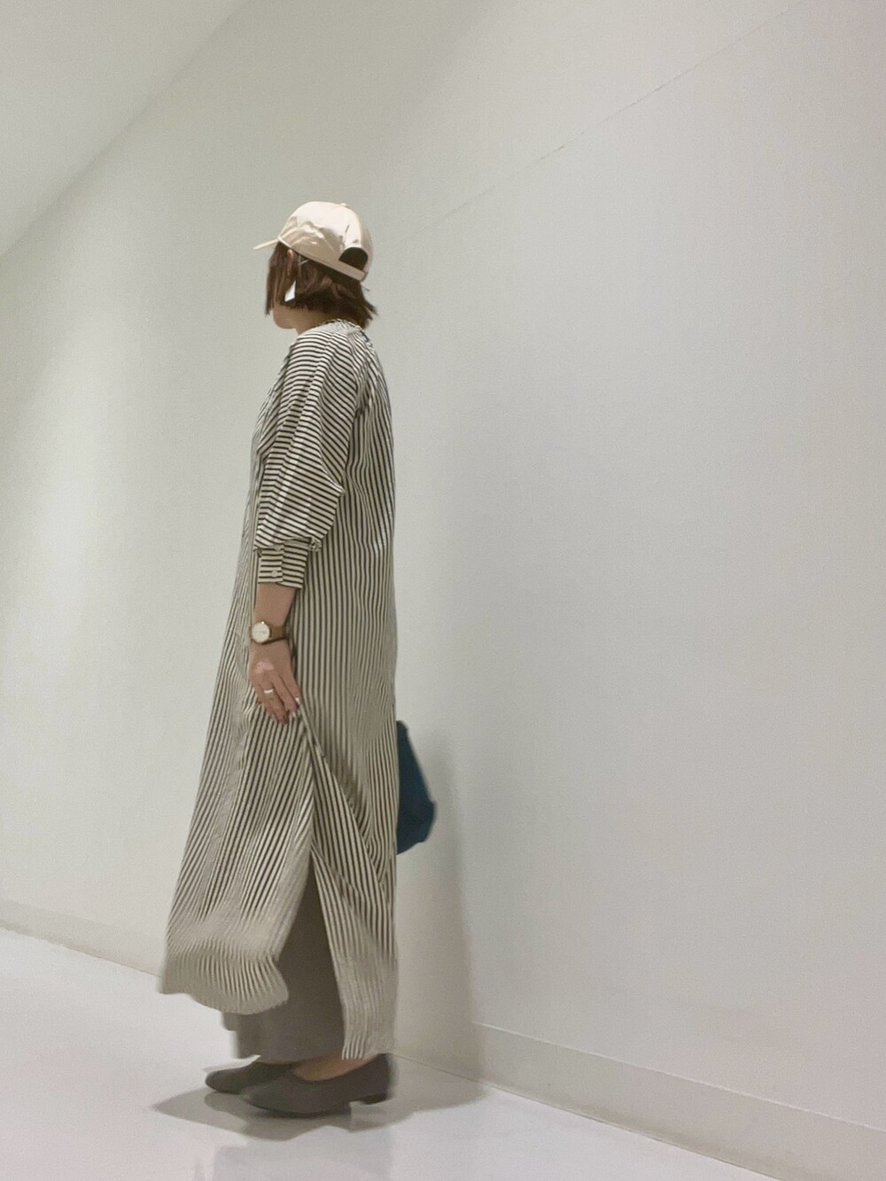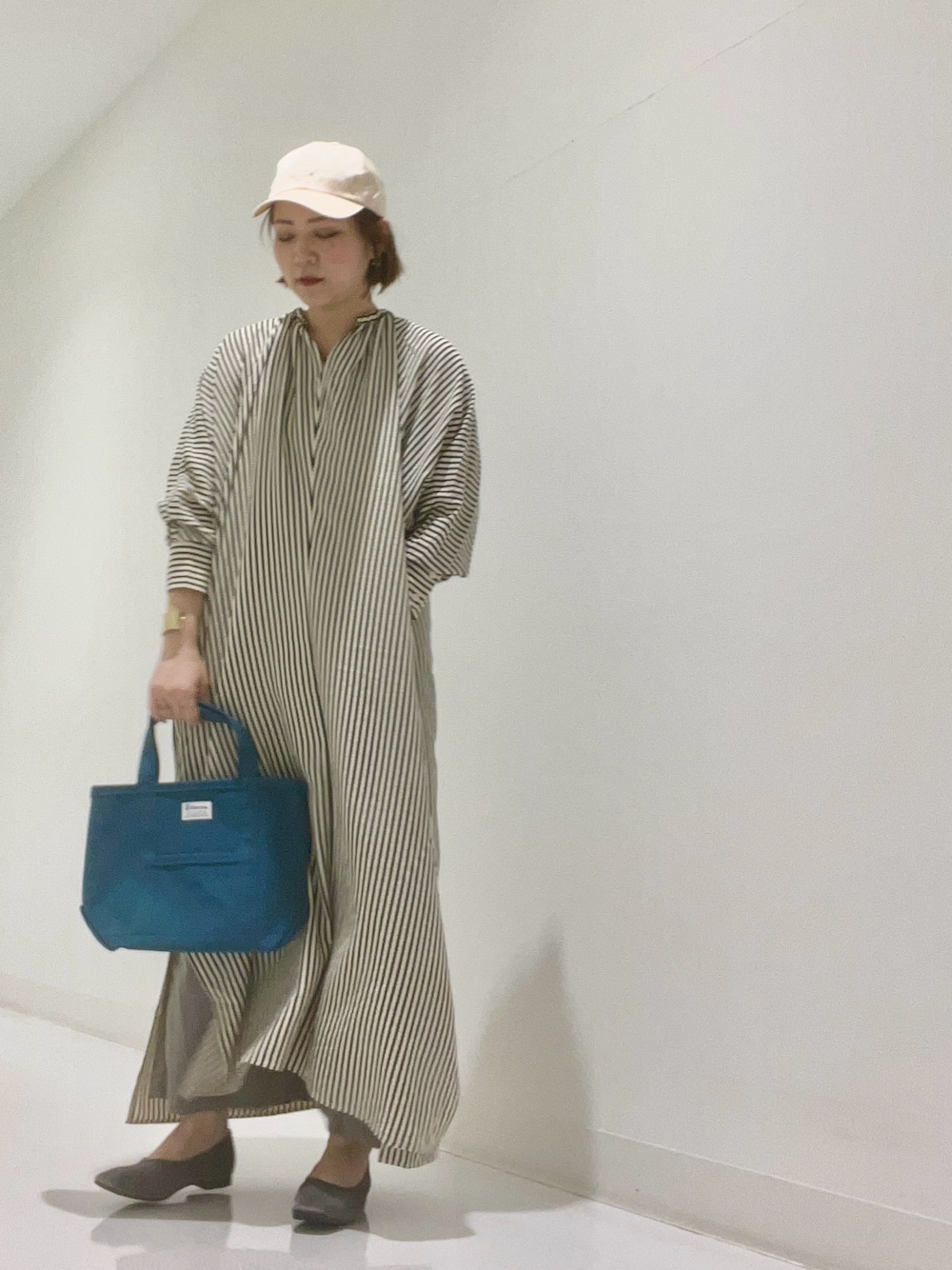 ストライプのワンピースは襟ぐりがスッキリしていて存在感のあるアイテムです‼︎