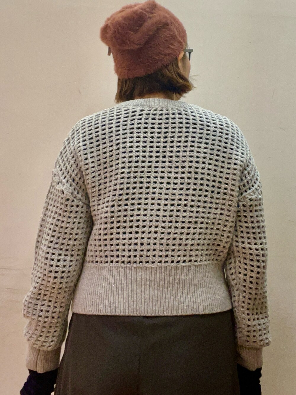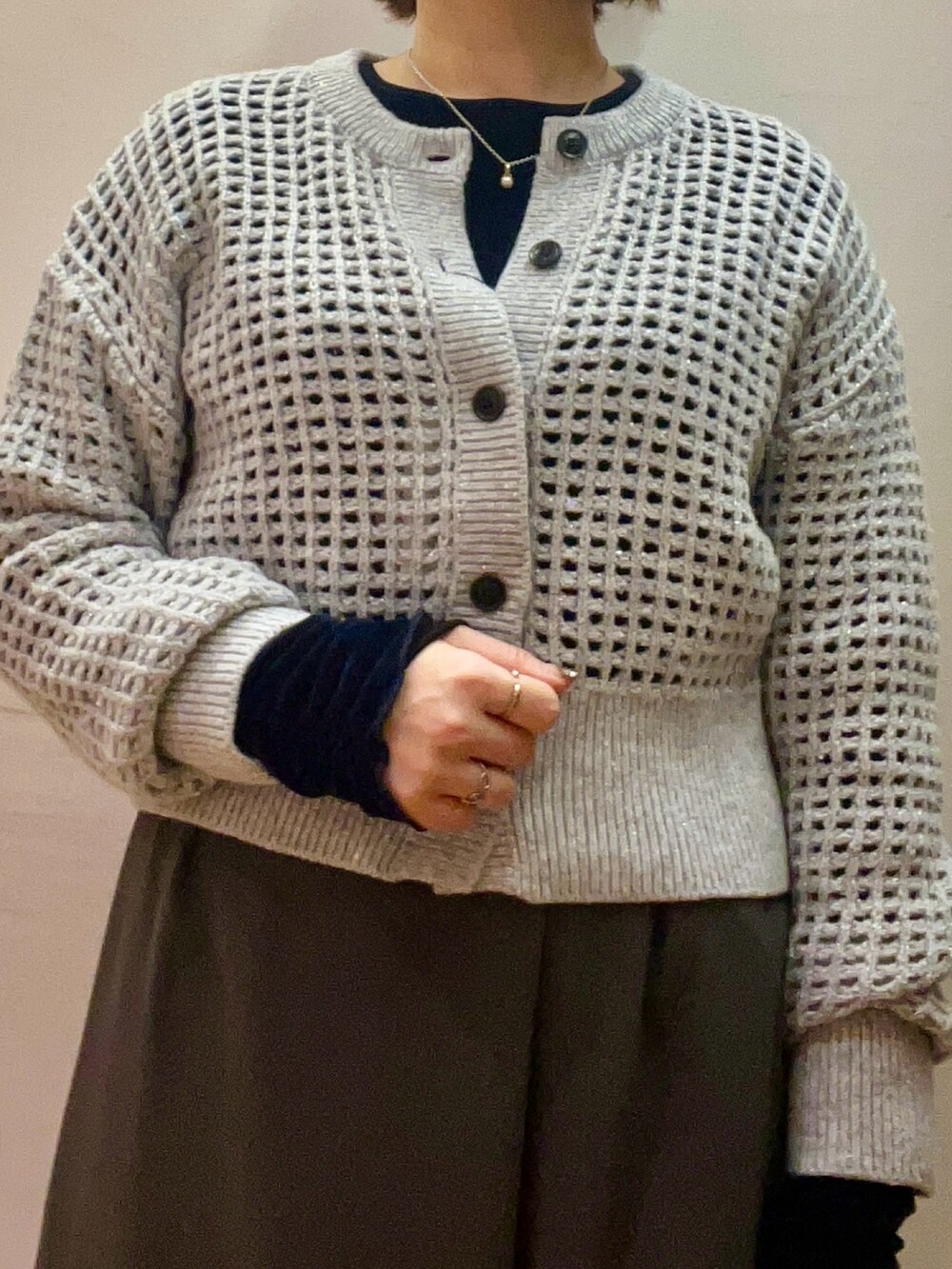 ニットカーディガンはスパンコールがついていて旬なアイテムです✨