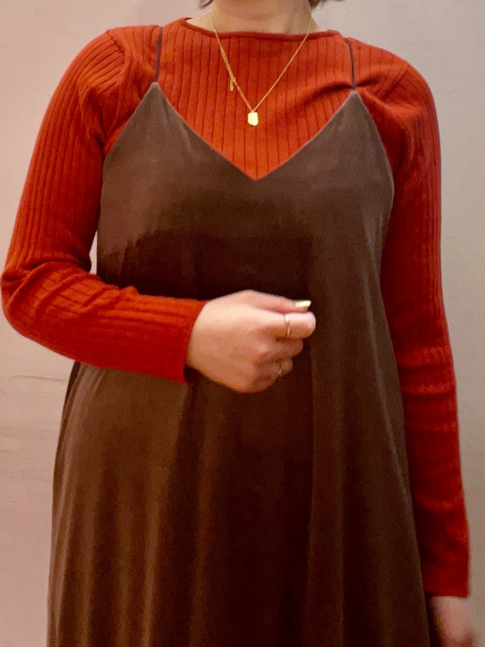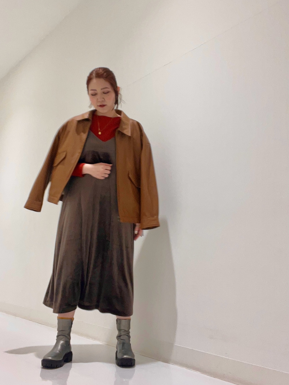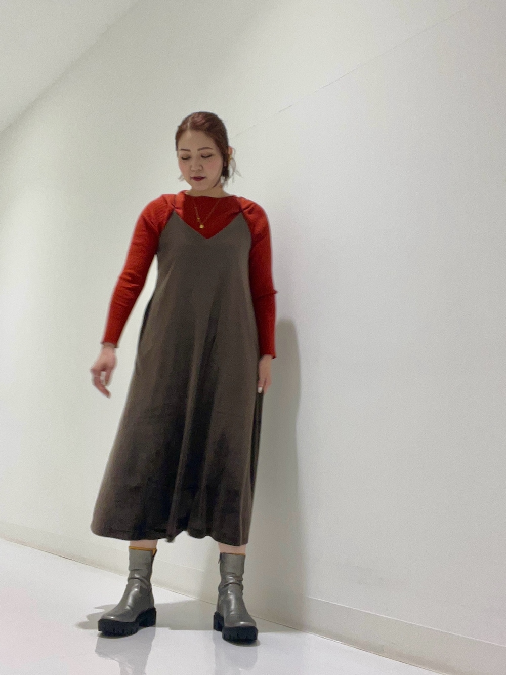 ベロアキャミワンピースはレディなアイテムでカジュアルなアウターやブーツと合わせ甘くないコーディネートに✨