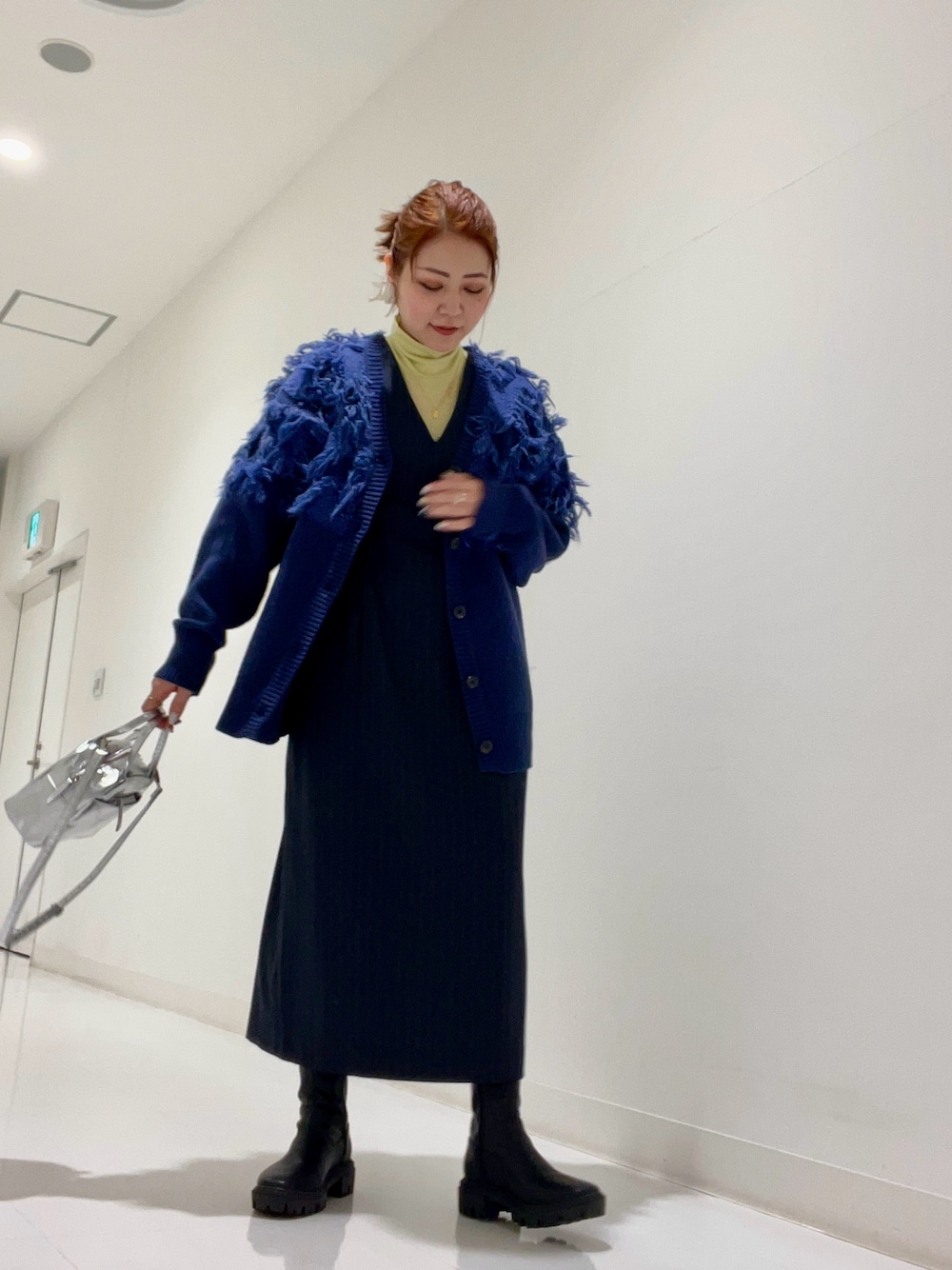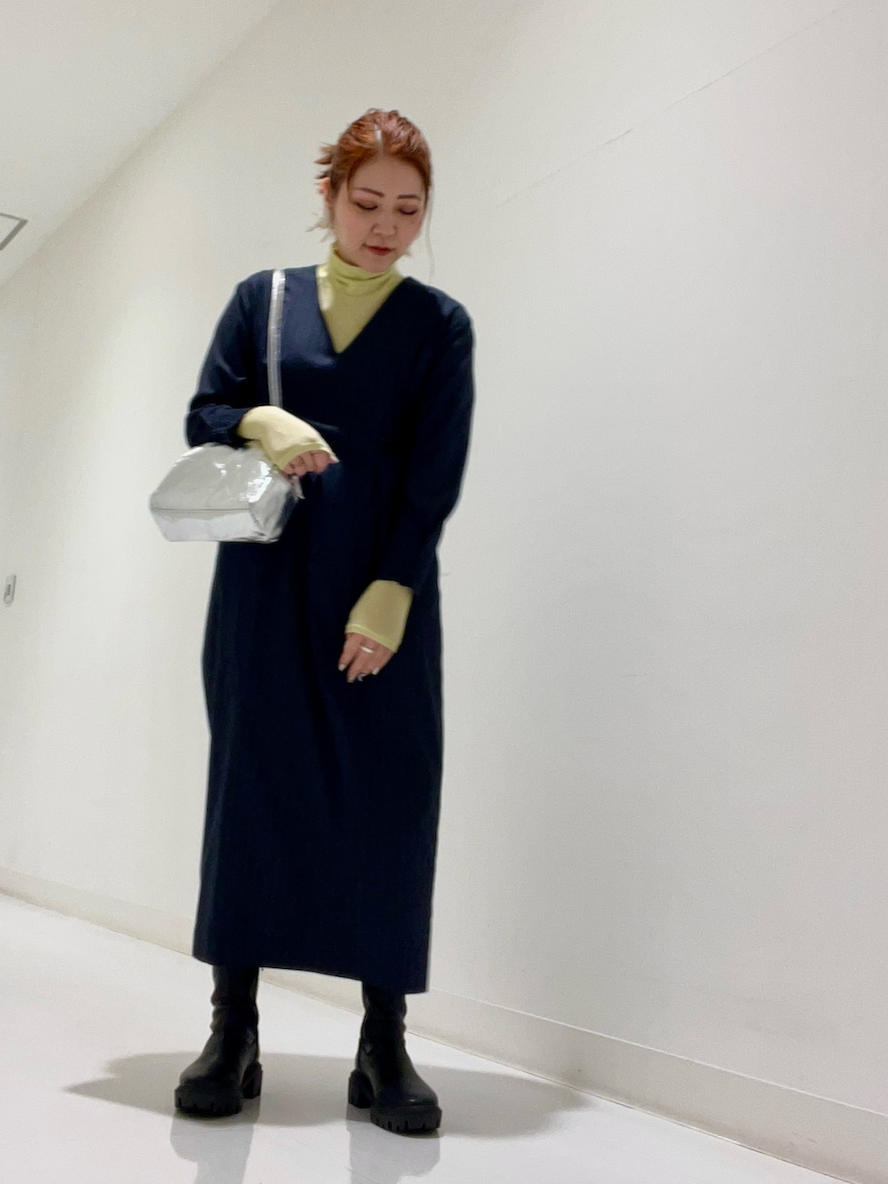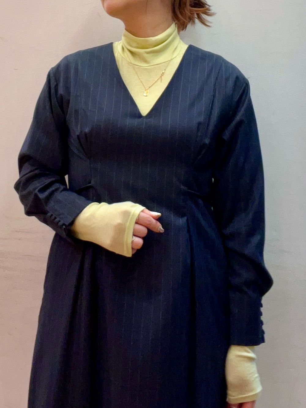 スッキリとしたデザインがポイントであるワンピースはお洒落に様になります◯