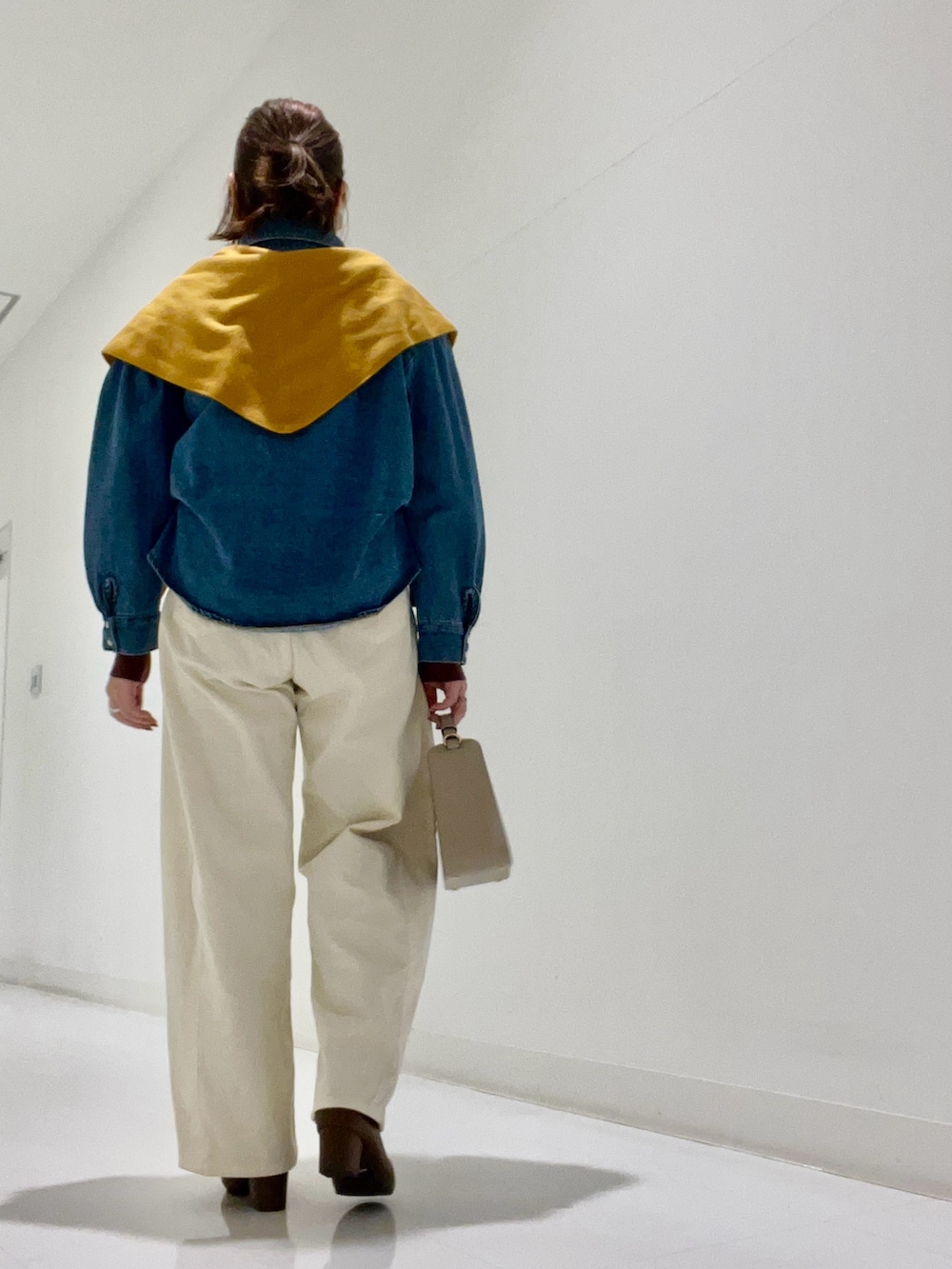 ショールがポイントで後ろから見るとフードの様な印象になります◉