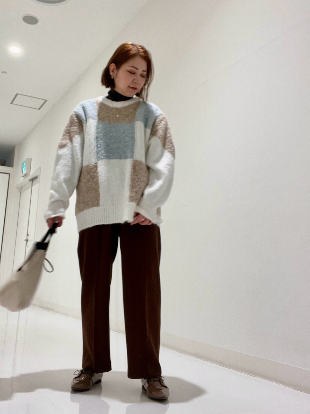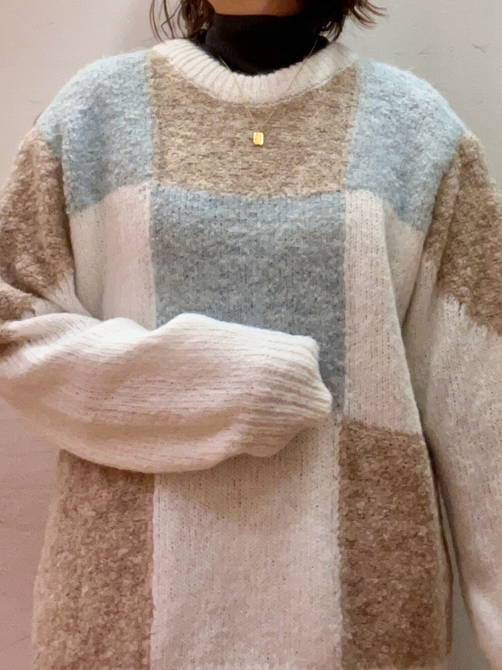 ブロックチェックニットはカラーが可愛く淡くなりすぎないのでボヤける心配もないです◉