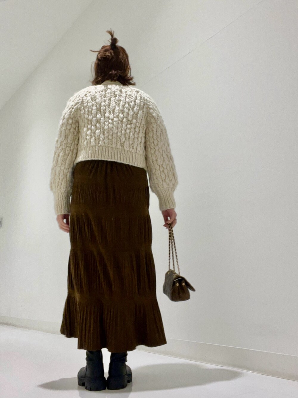 モコモコなカーディガンはショート丈でバランスも取りやすく、ほっこりする様なデザインがかわいいです◉