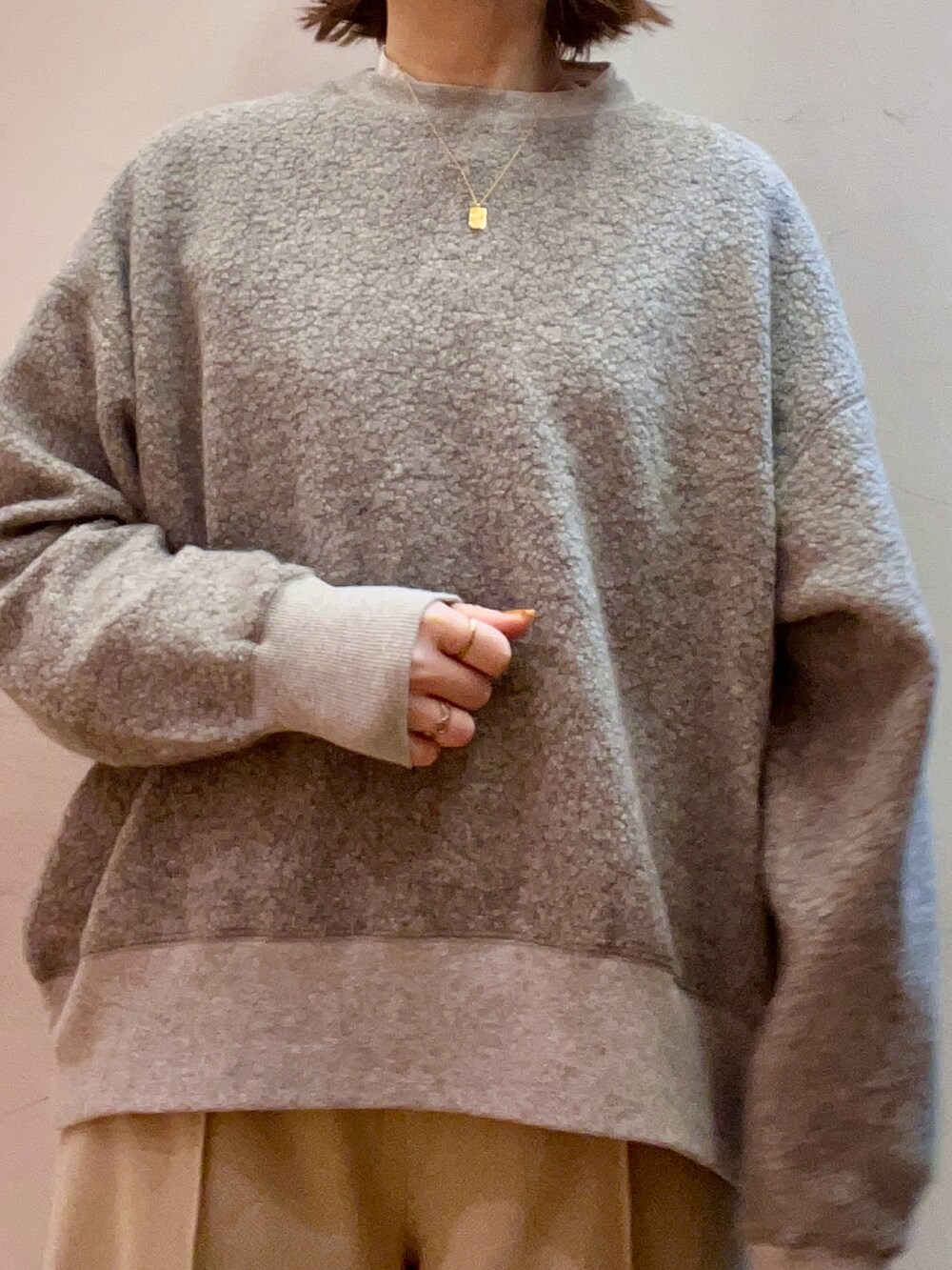 ボアプルオーバーはリラックスしたスタイルで様になりワイドパンツと合わせました‼︎