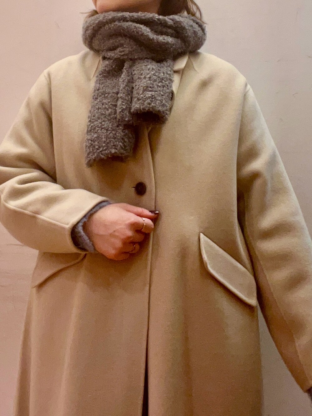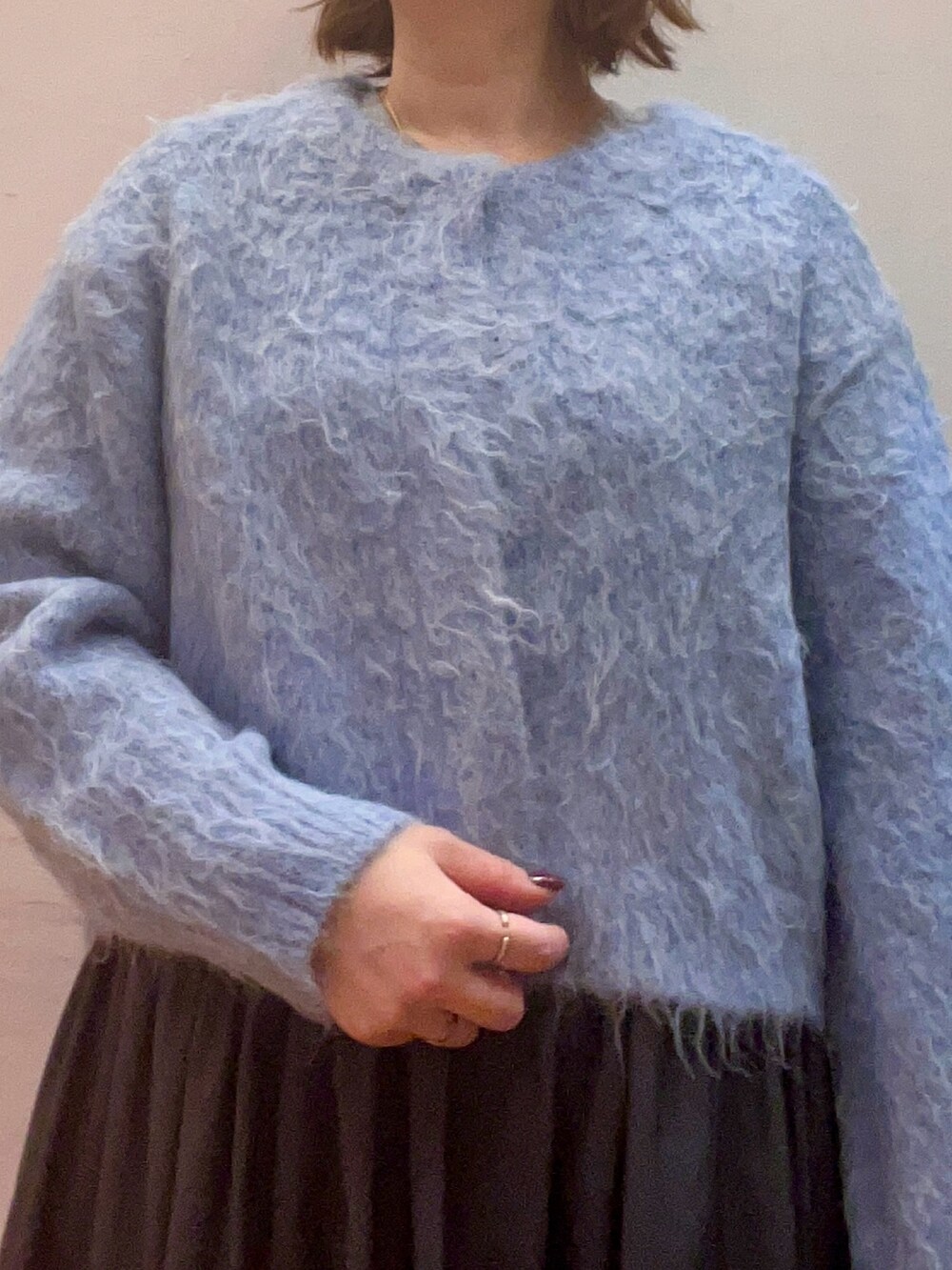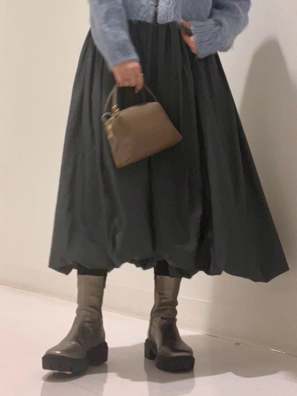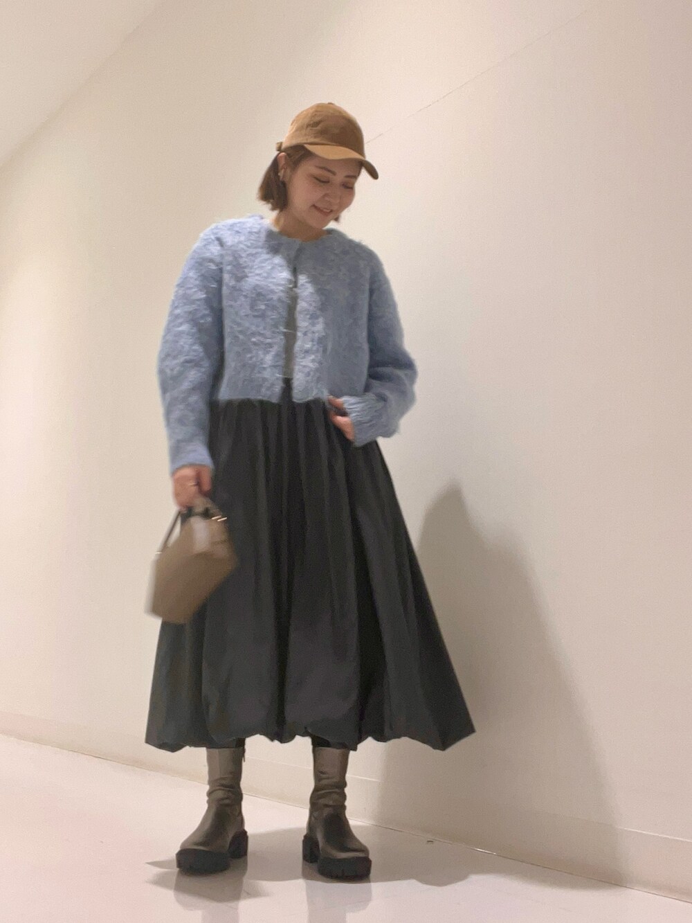 バルーンのワンピースはトップに毛足が長めのニットを合わせました‼︎ボリューム感が可愛くオススメです◉