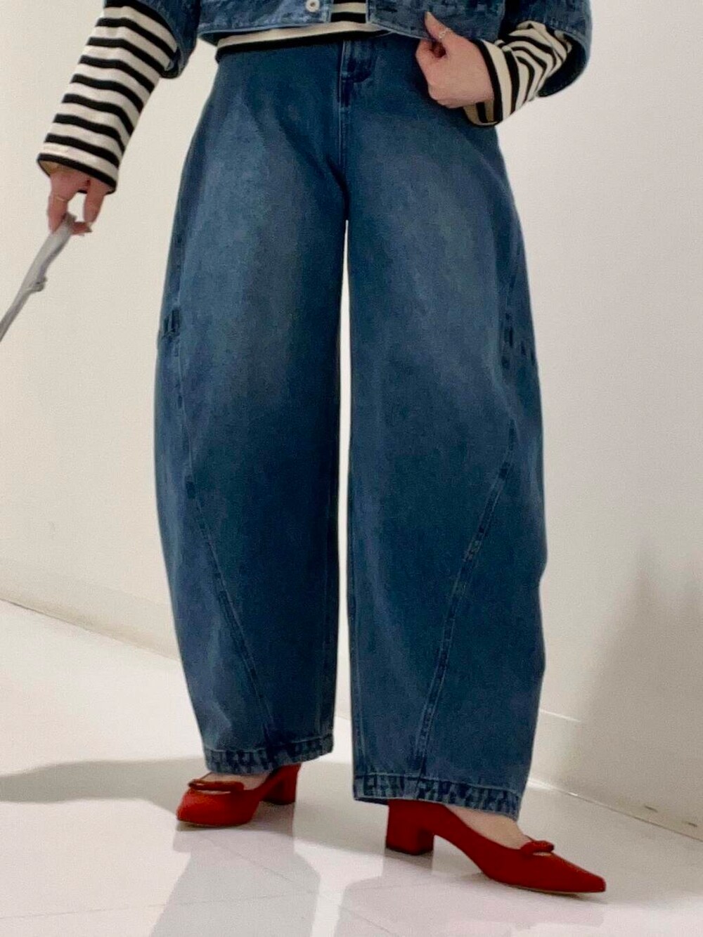 ボトムは、コクーンのシルエットが可愛く高身長の方にも嬉しい着丈が◉