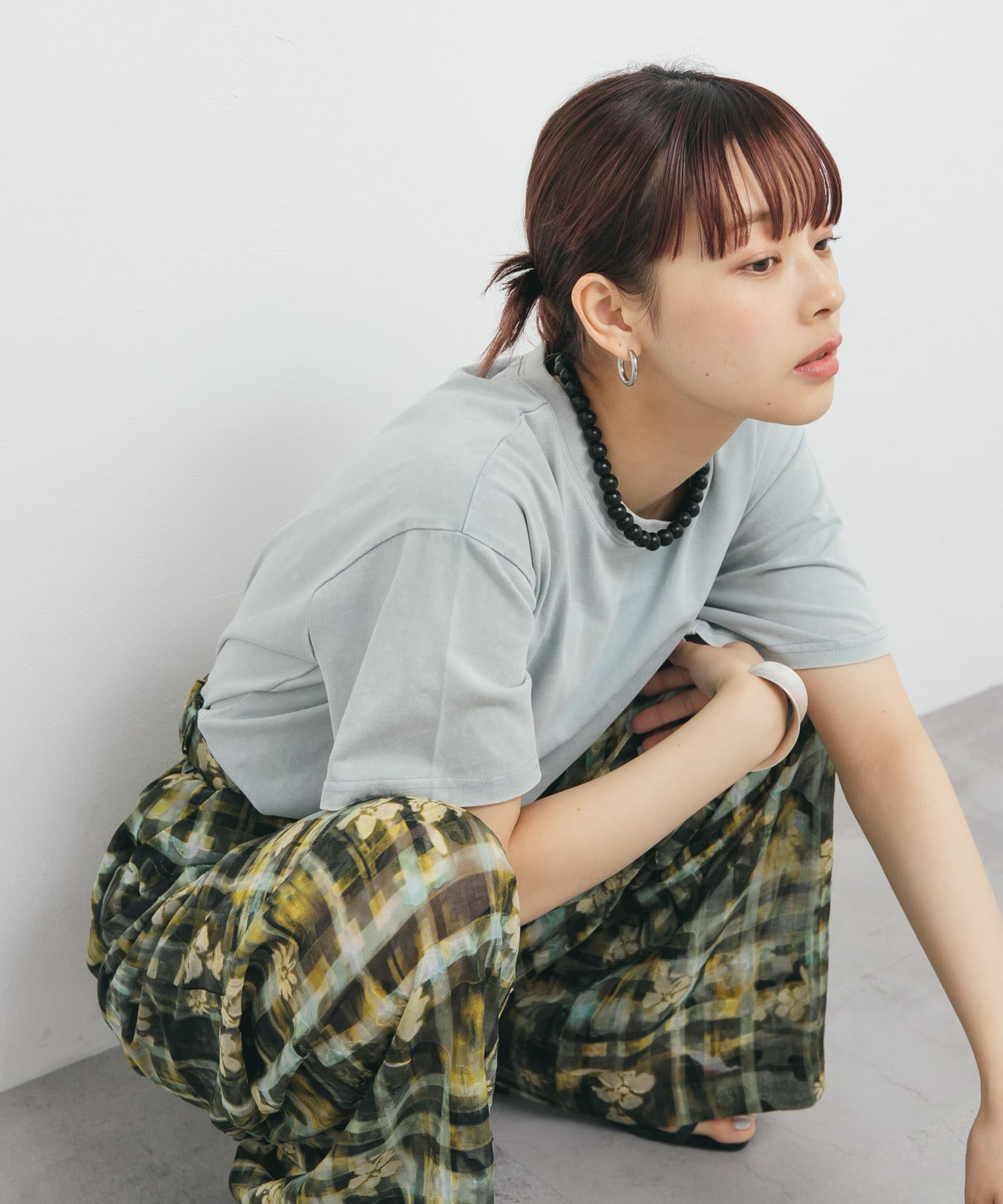 ヴィンテージライクなデニムスカートは裾のフリンジがとても可愛いです!フリルTシャツは涼しげな素材でスカート、パンツどちらにも合わせやすい万能アイテムです。ロンTに重ねて肌寒い季節まで使えるのでおすすめです。