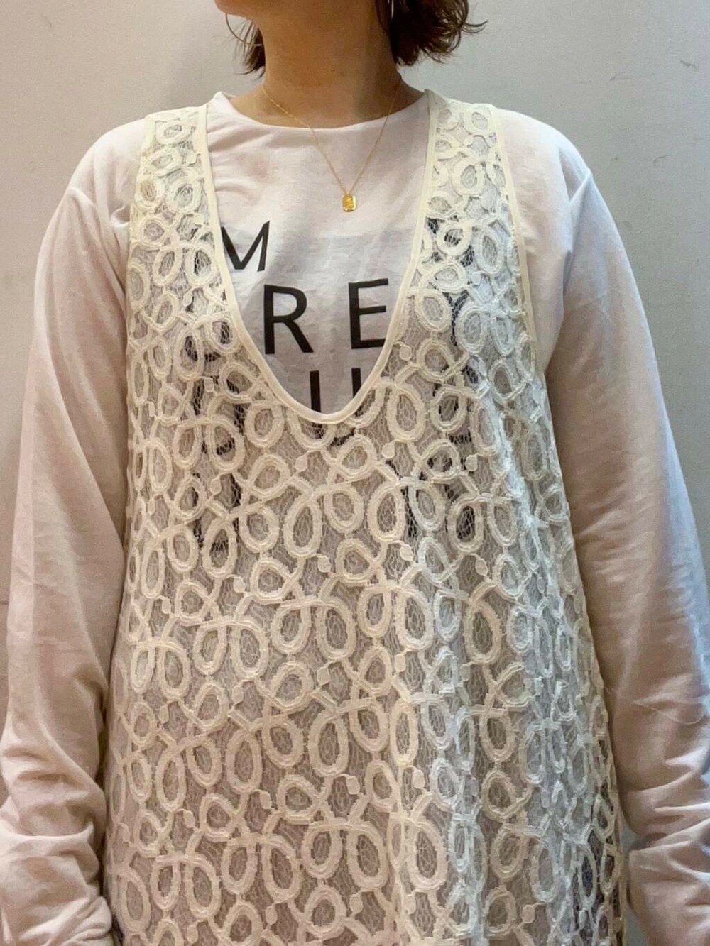 カジュアルなシアーロンtを合わせ軽やかなカジュアルな印象に◉
