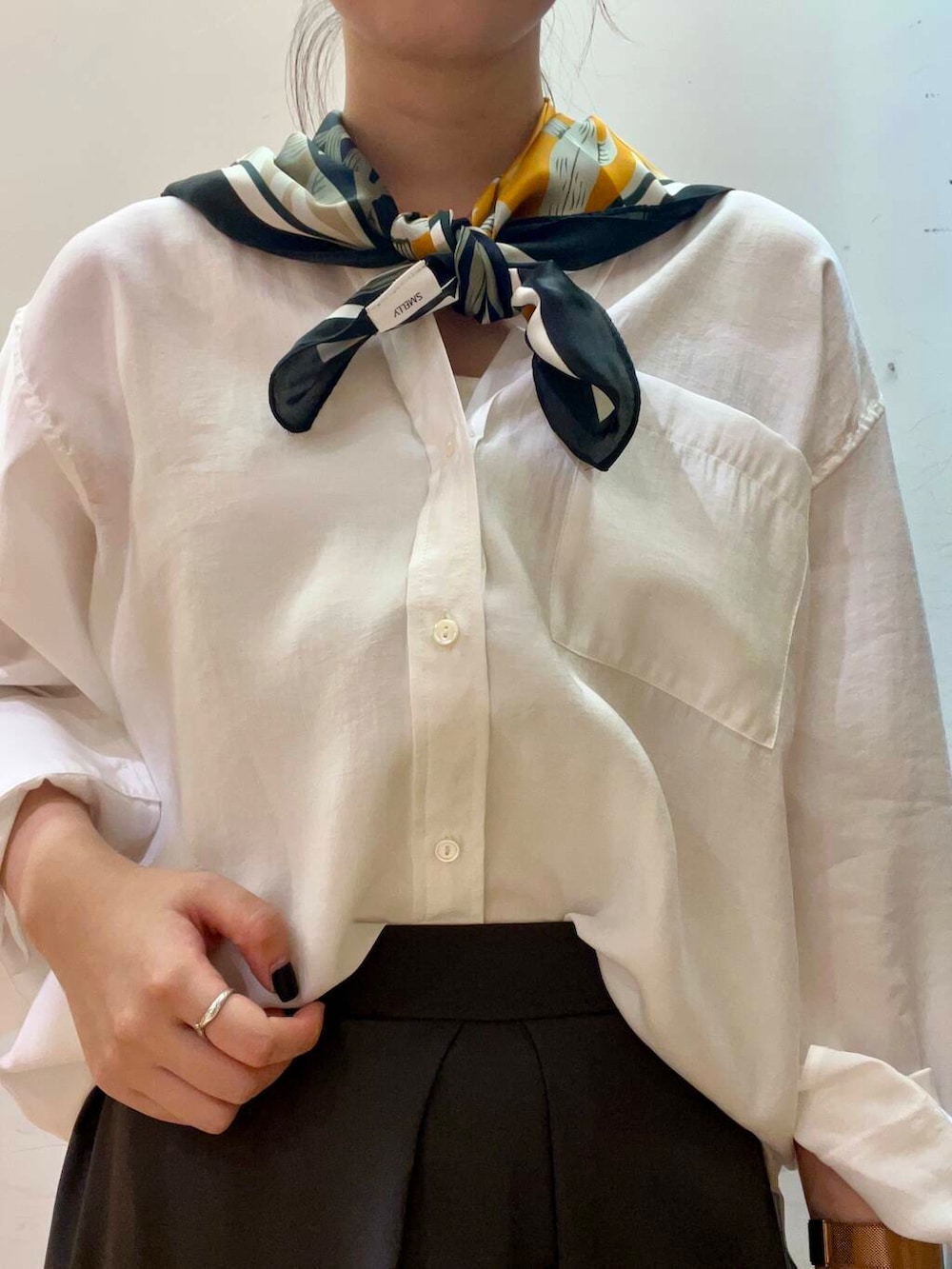 ブロードカラーレスブラウスは骨格ウェーブが挑戦しやすいアイテムかと思います。